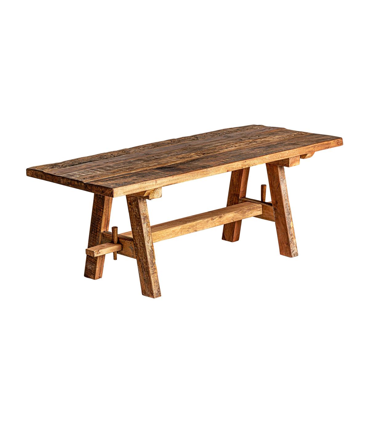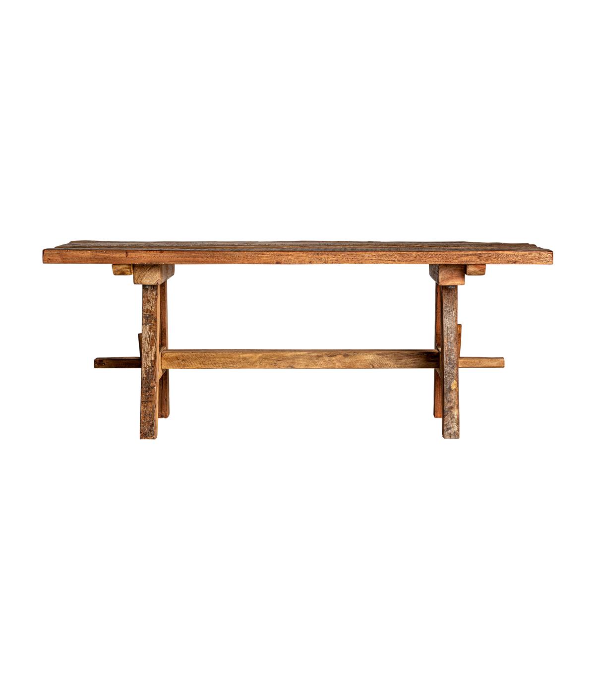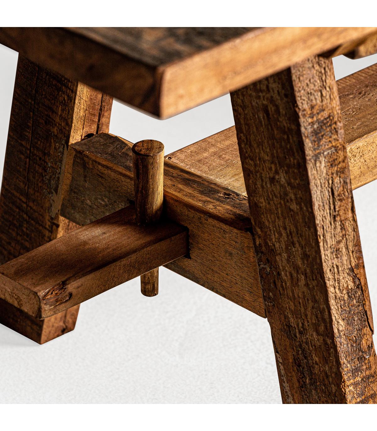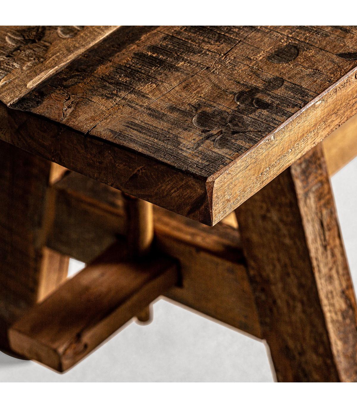 Banco badai en color natural envejecido de estilo étnico. Fabricado en madera de mango reciclada. Producto desmontable.