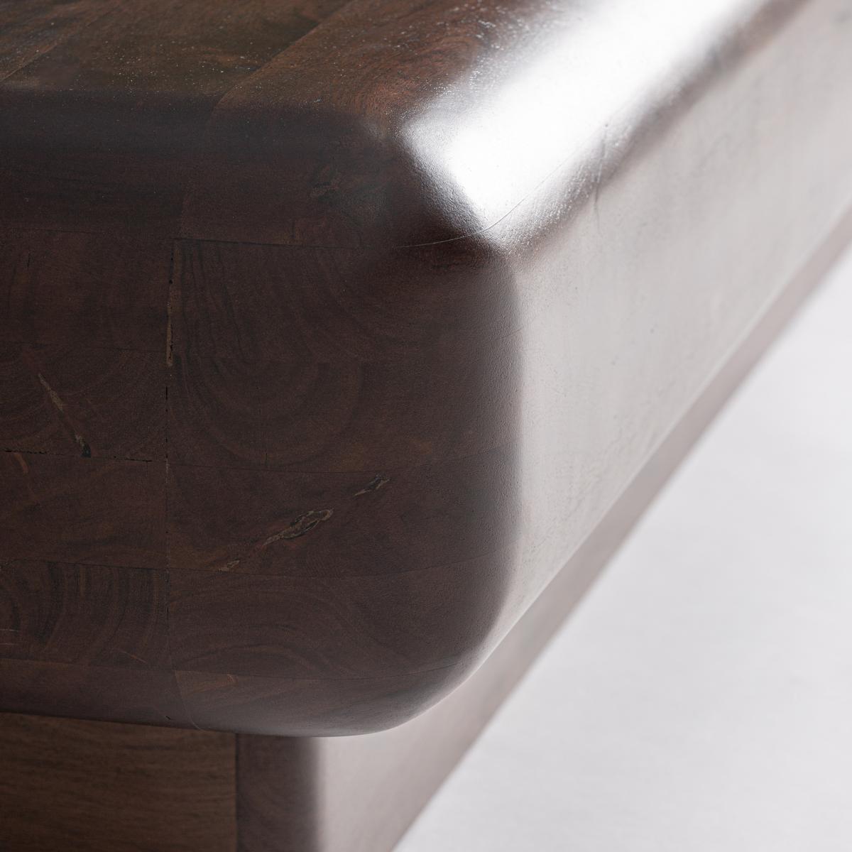 Mesa de centro fabricado en madera de acacia en color marrón.