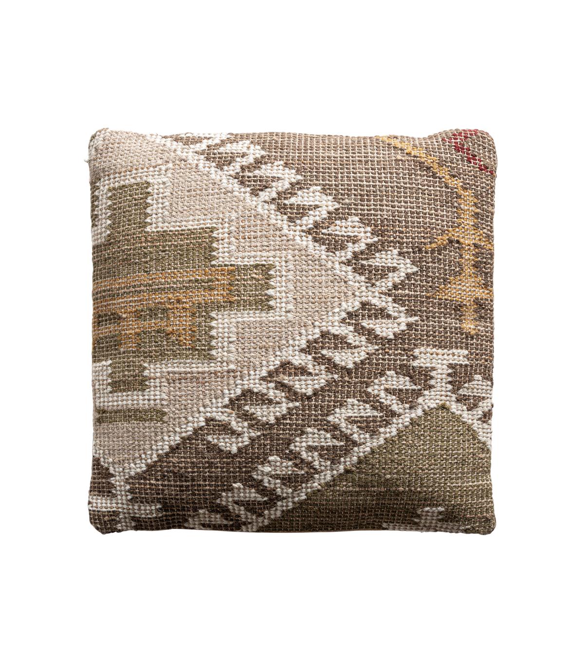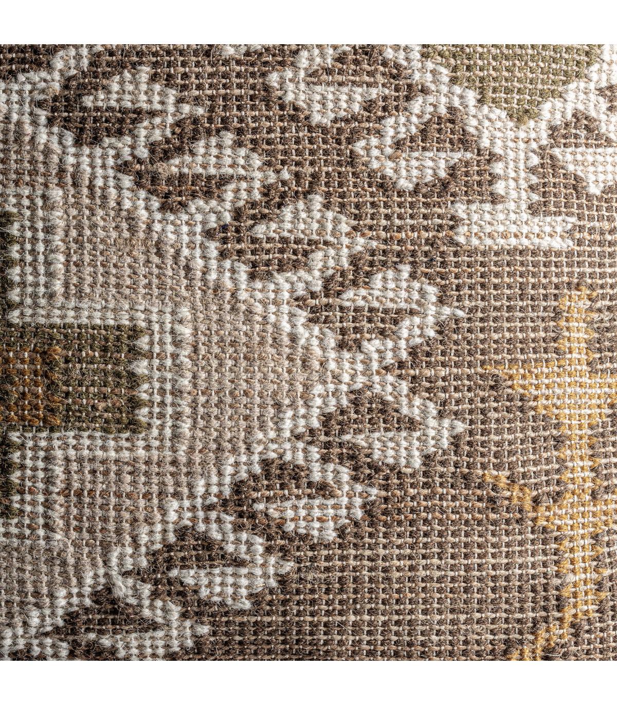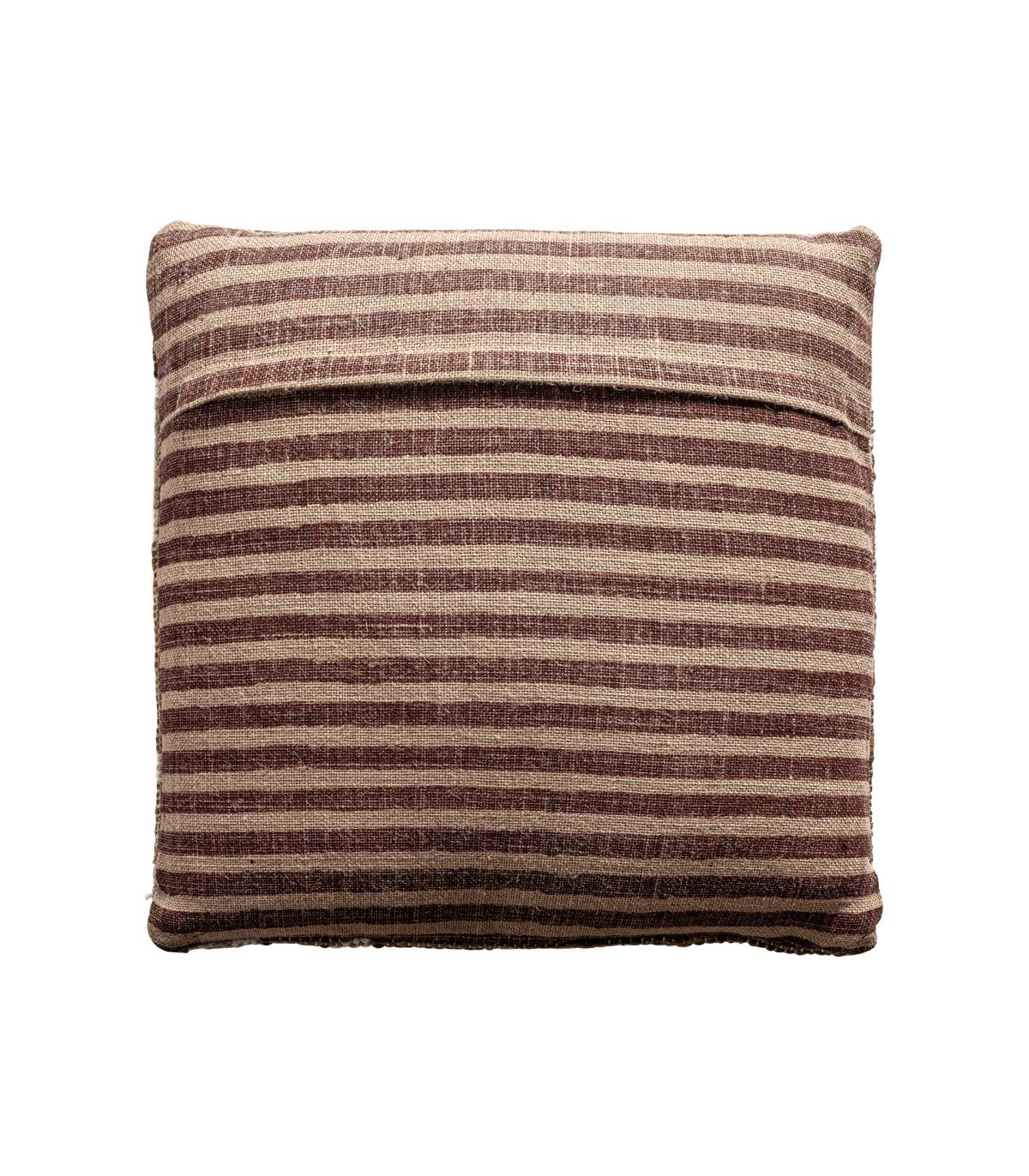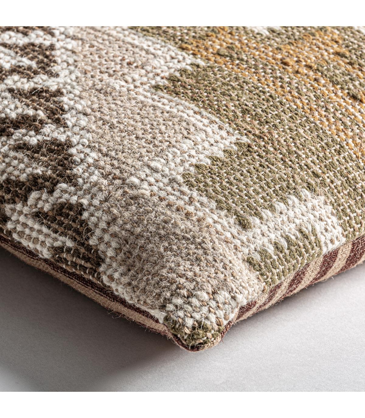 Cojín Glaeke de estilo étnico fabricado en algodón en color tonos en marrón con acabado estampado combinado con yute en color tonos en marrón.