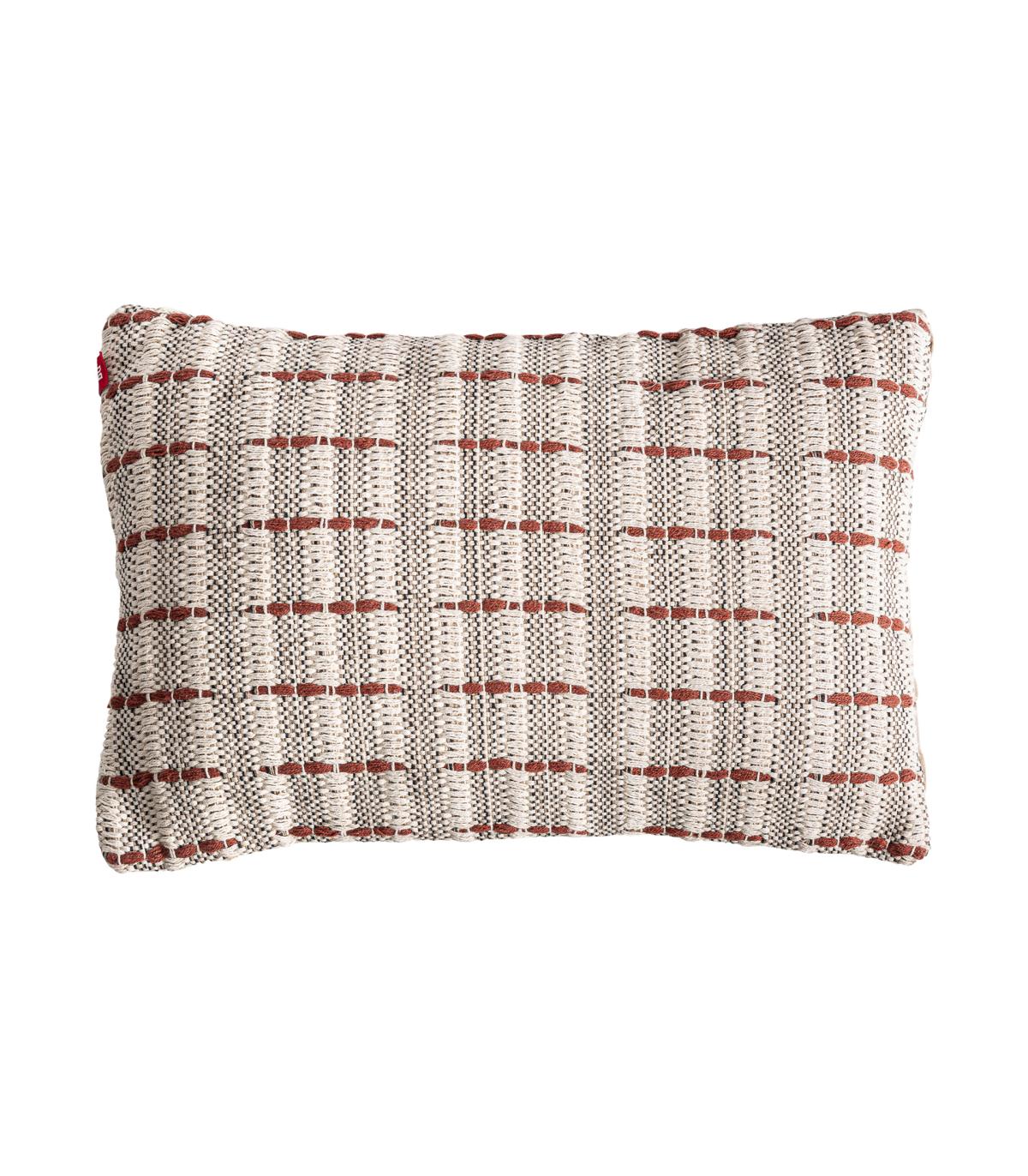 Cojín Keale de estilo clásico, fabricado en yute en color marrón claro, combinado con poliéster en color terracota en color beige. Producto desenfundable.