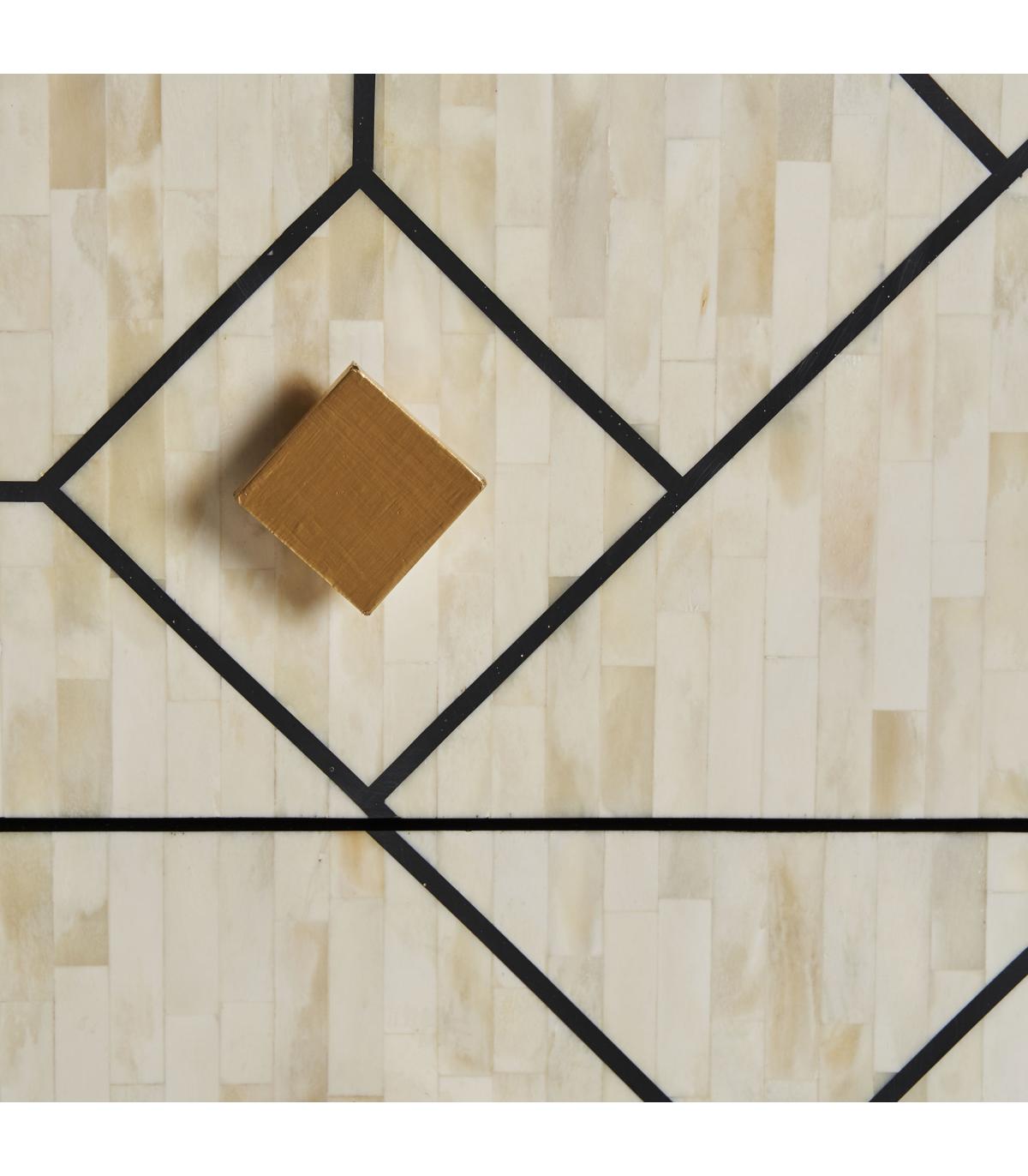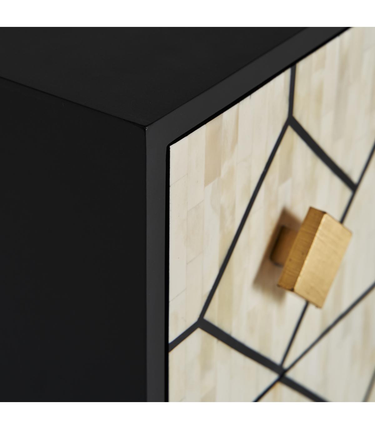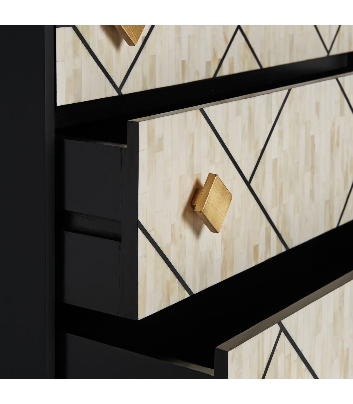 Cómoda charmes de estilo art deco fabricado en madera dm en color negro combinado con hueso en color blanco en color oro.