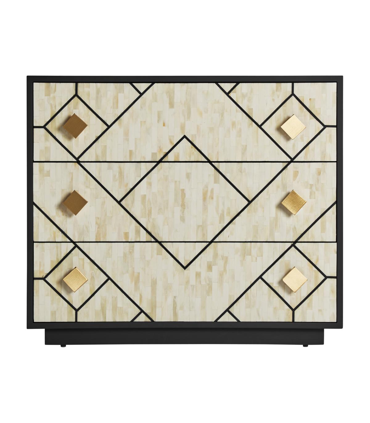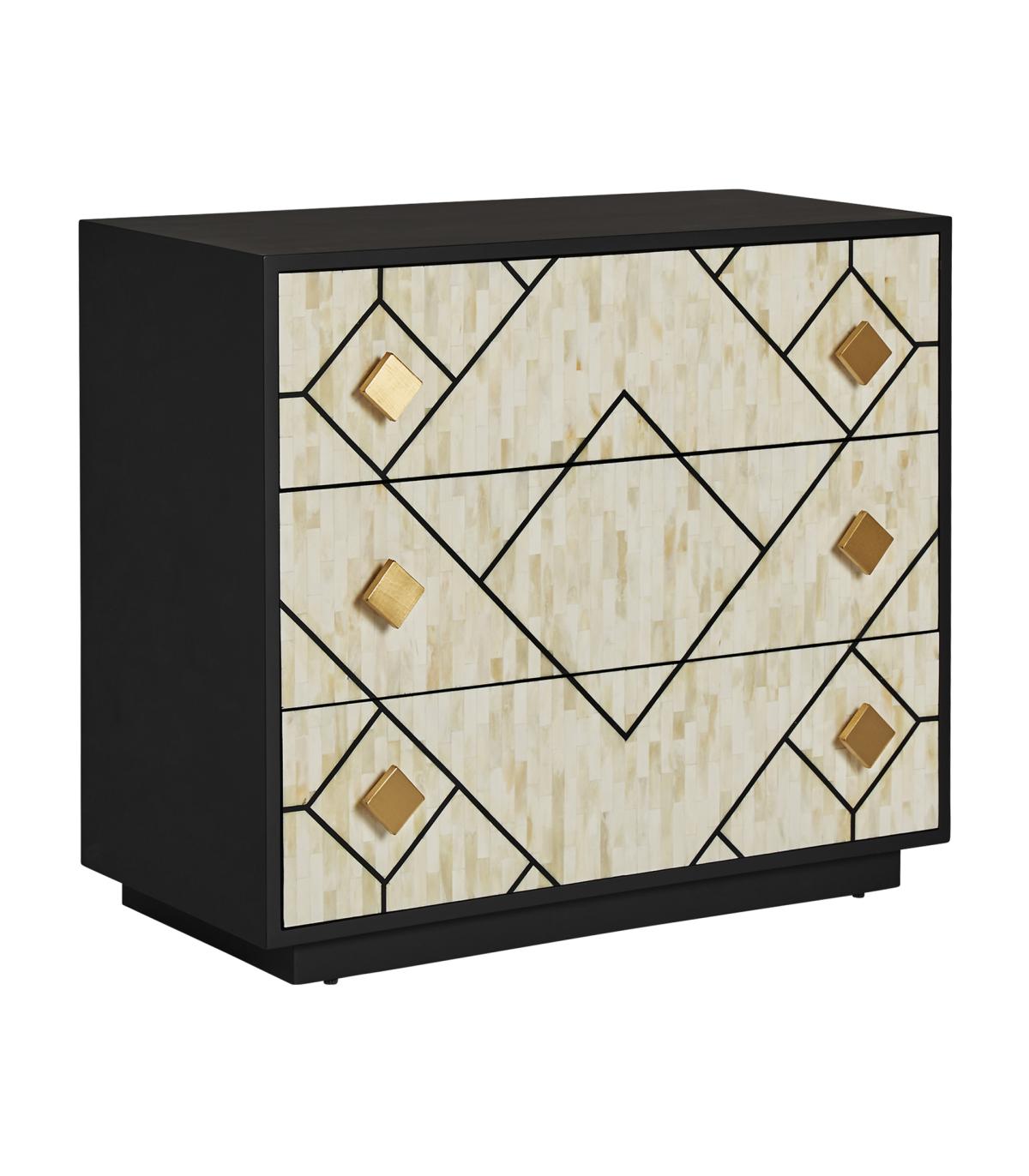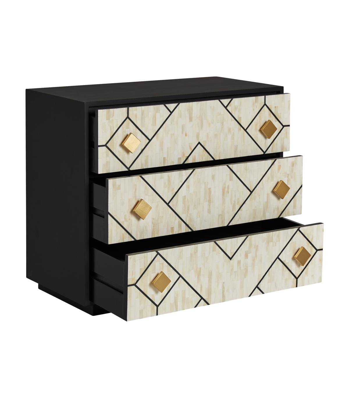 Cómoda charmes de estilo art deco fabricado en madera dm en color negro combinado con hueso en color blanco en color oro.