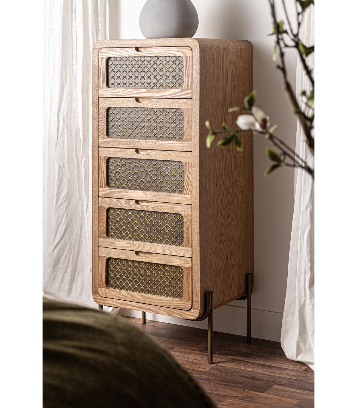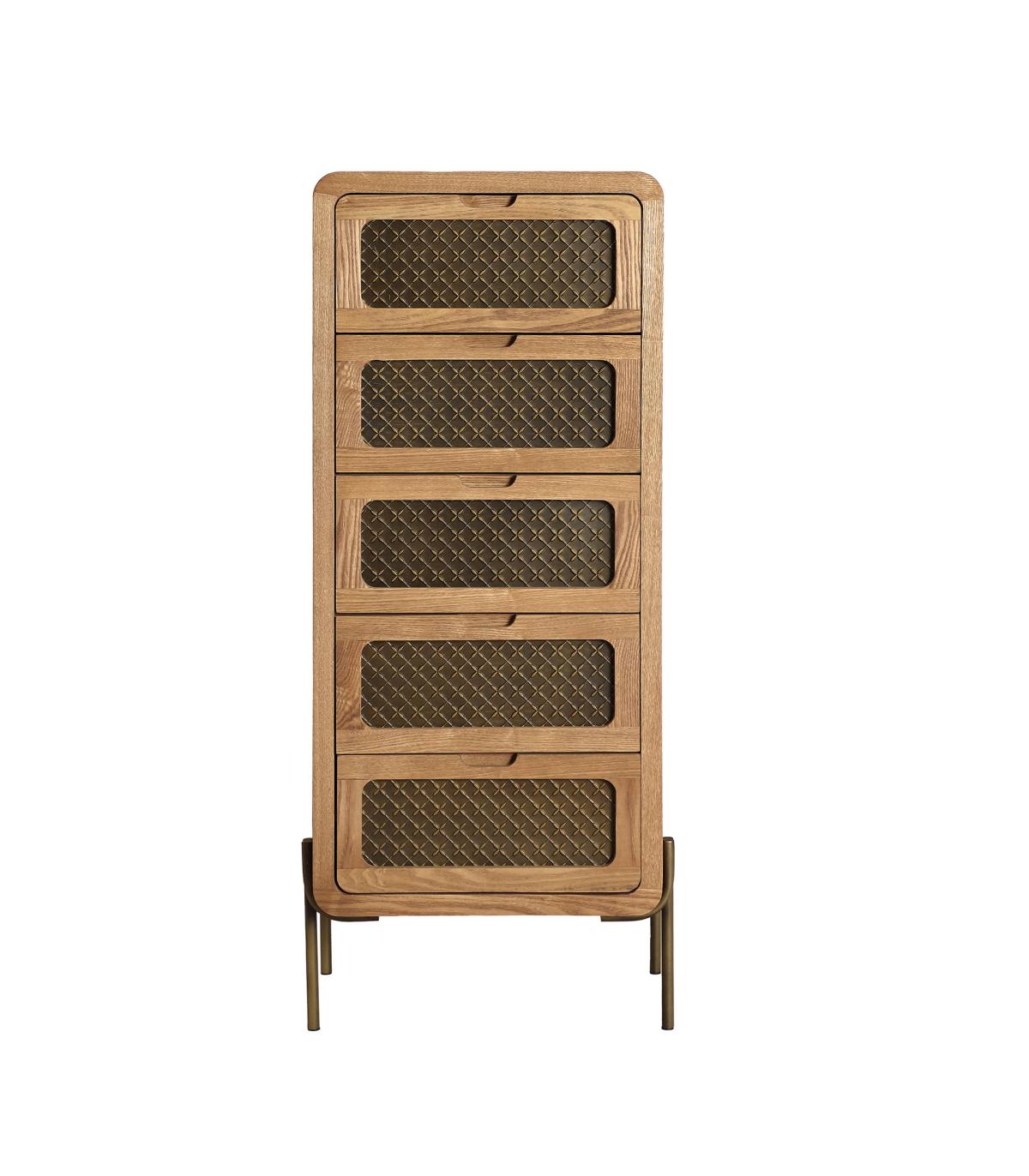 Sinfonier rectangular nevoy de estilo vintage, fabricado en madera dm en color marrón, combinado con aluminio en color oro con acabado viejo y hierro. Producto desmontable.