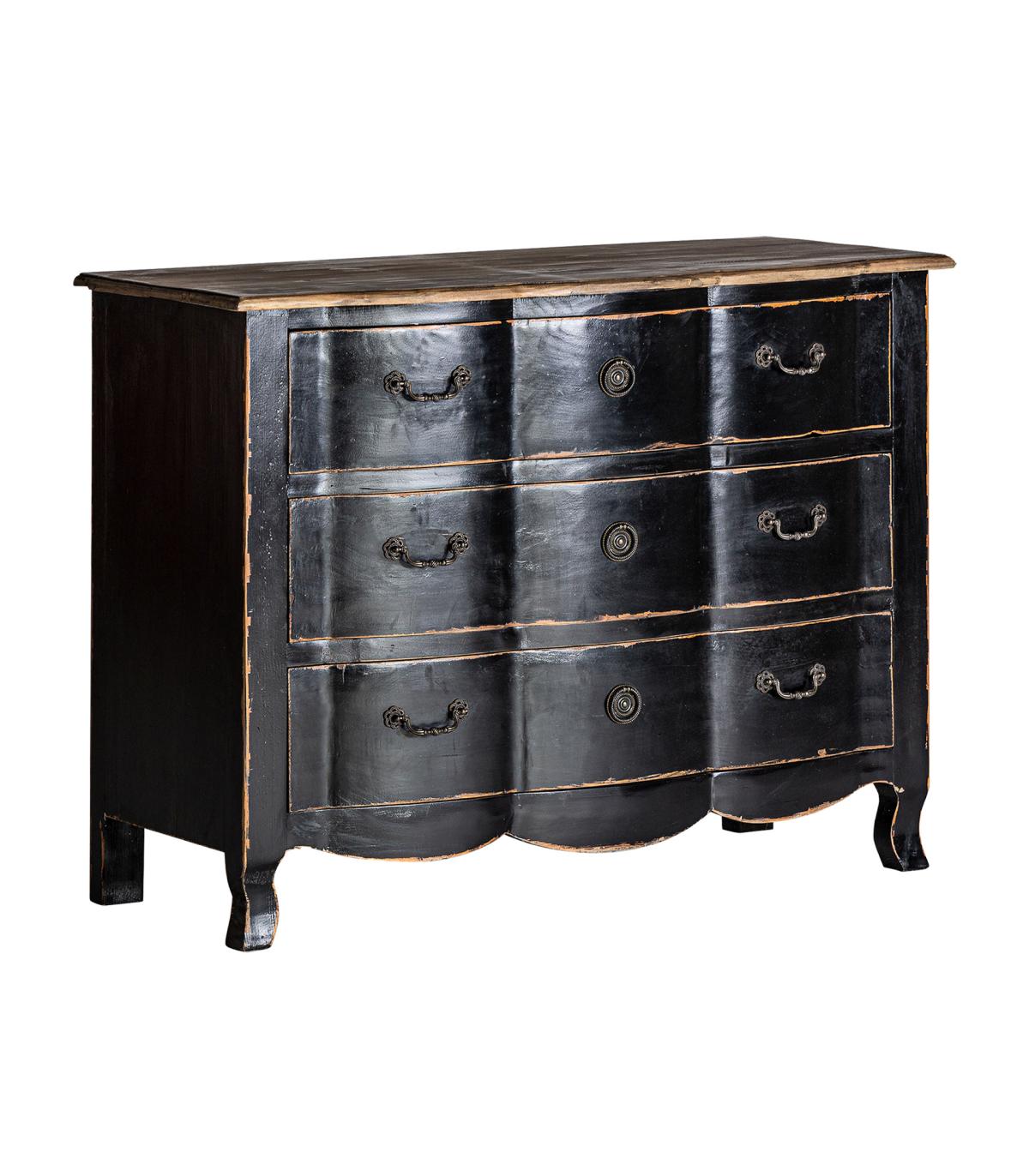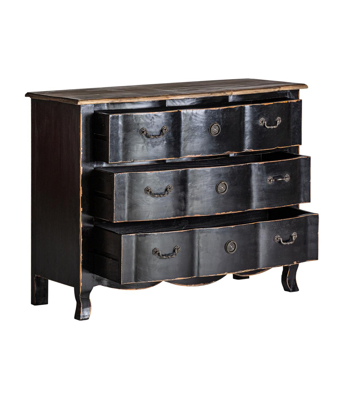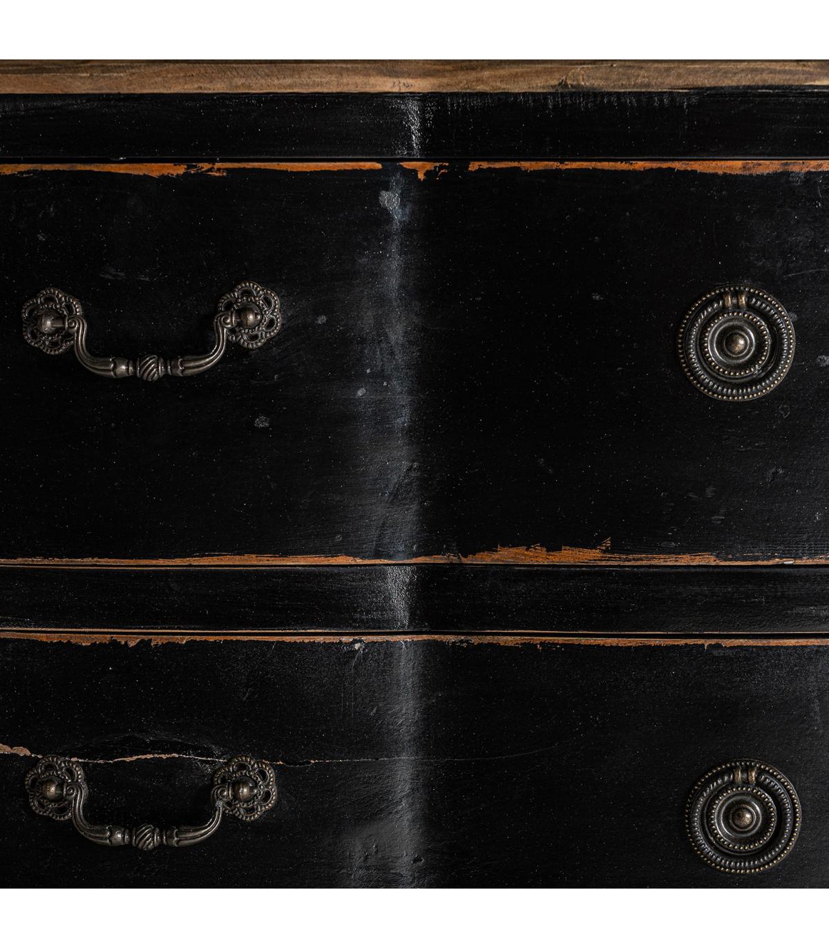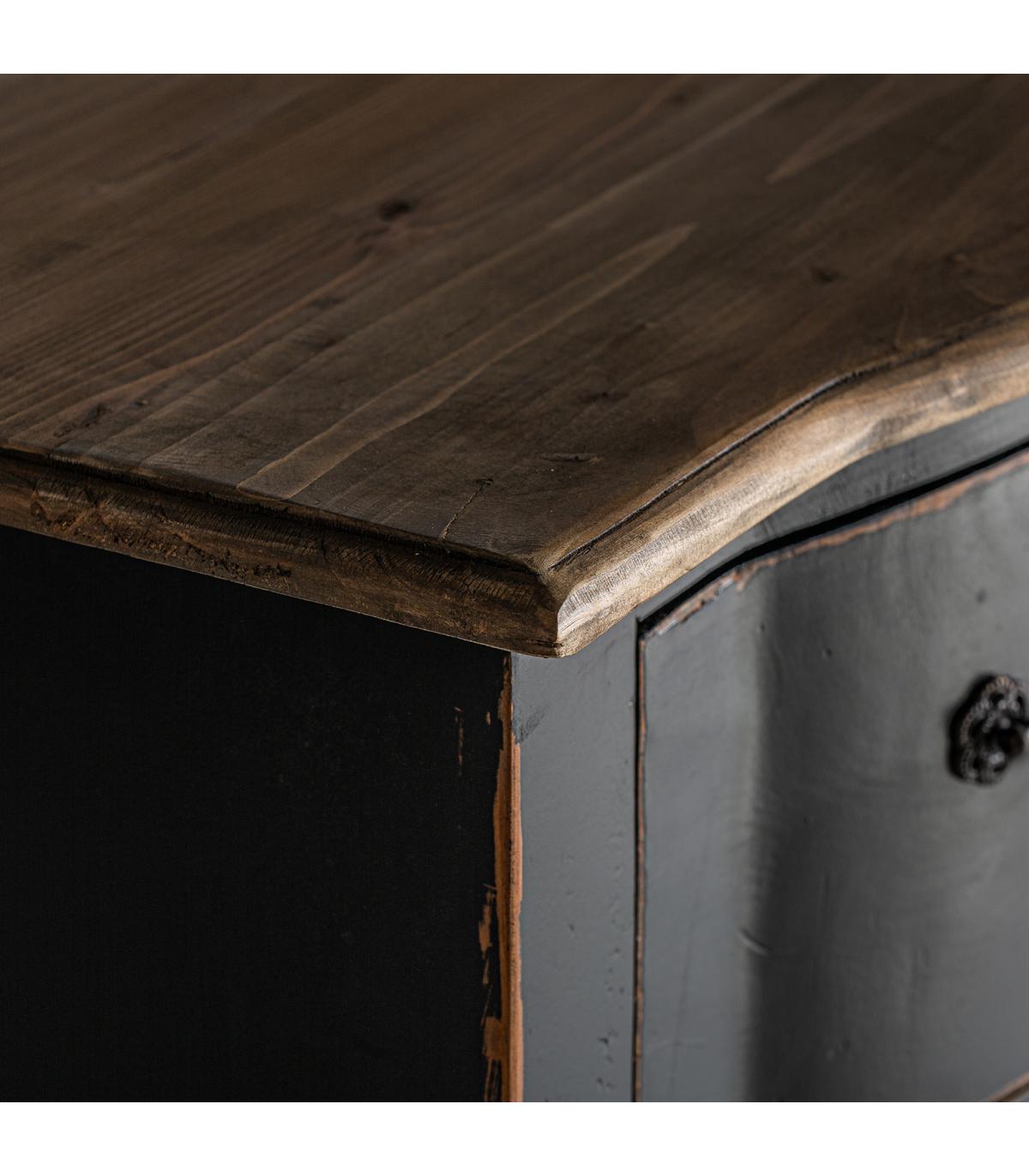 Cómoda Zenica de estilo provenzal fabricado en madera de pino en color negro en color natural.