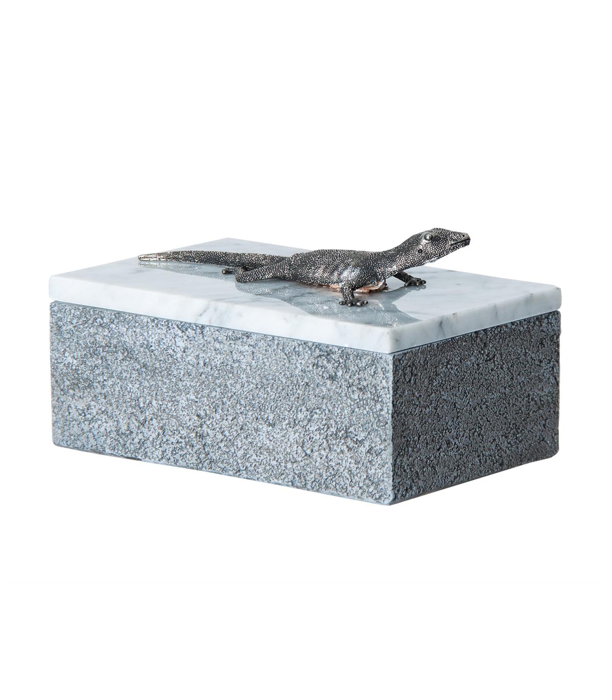 Caja Lagarto de estilo contemporáneo fabricado en mármol en color blanco en color gris.