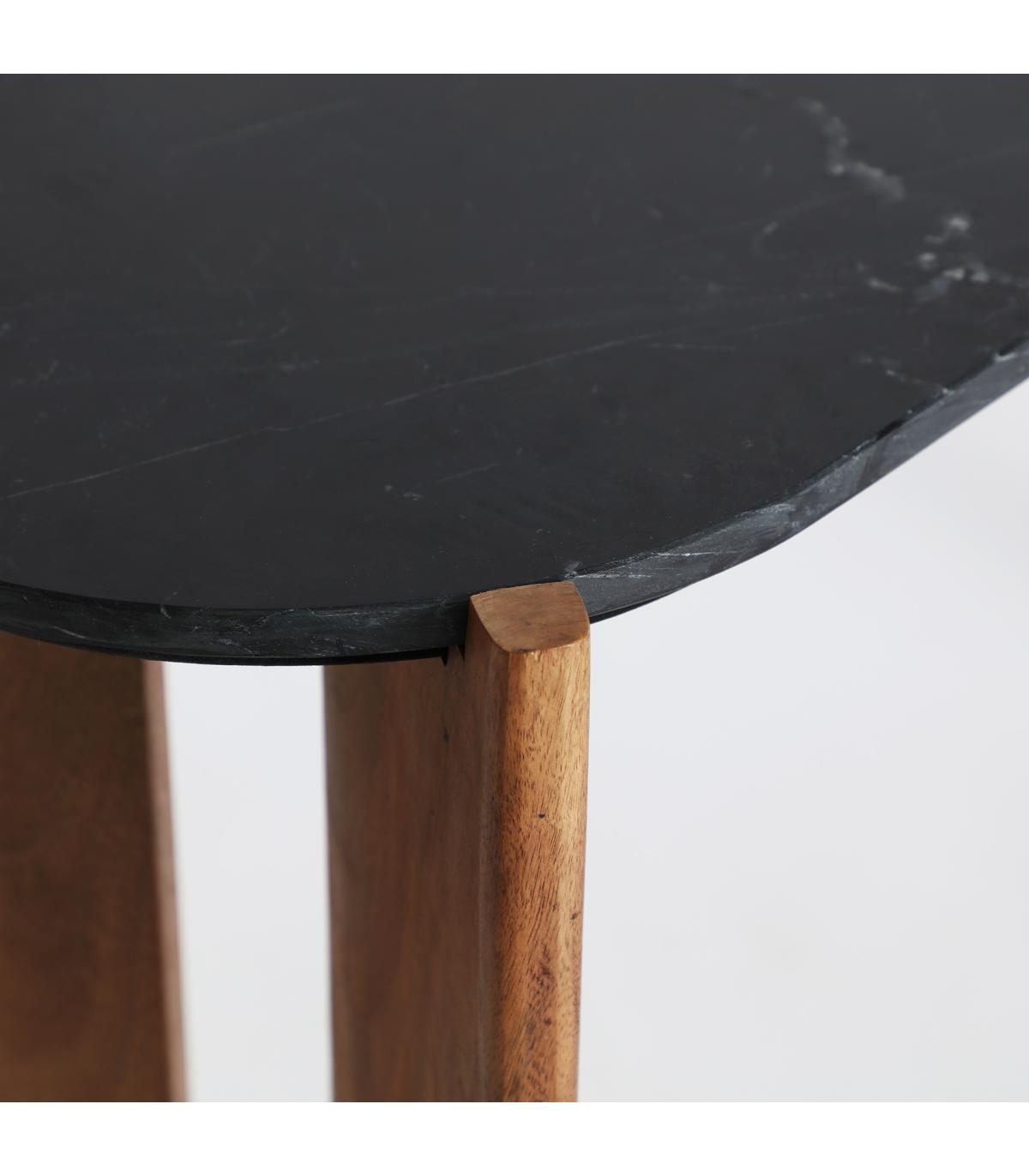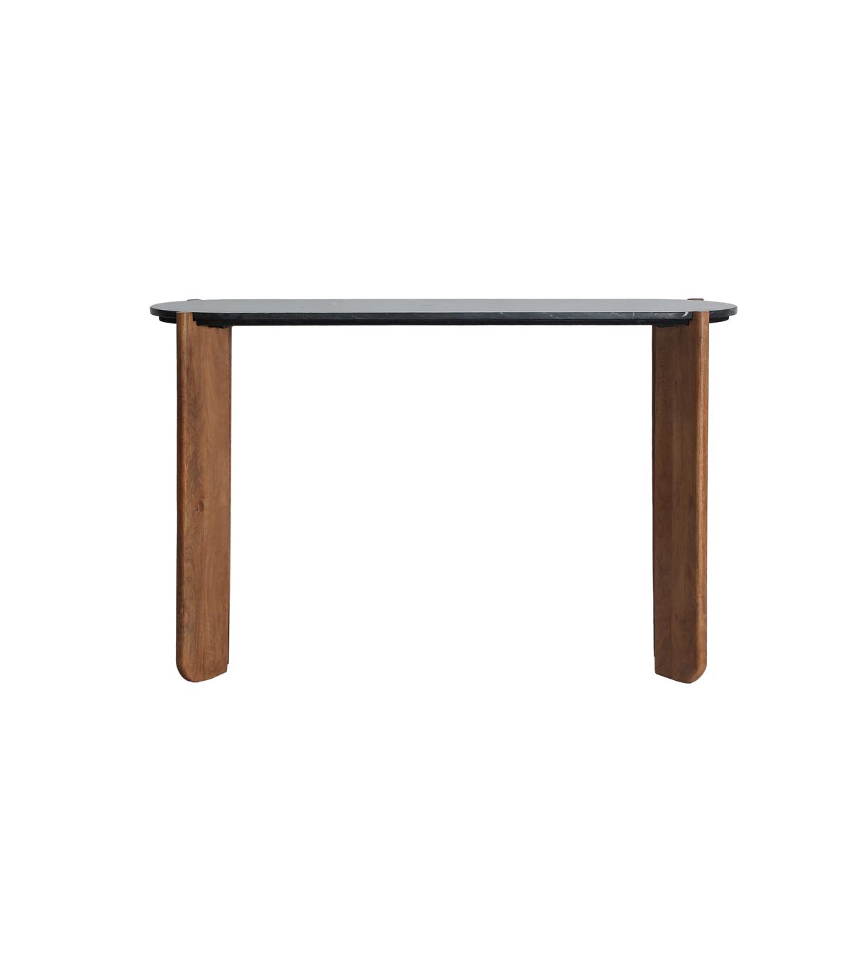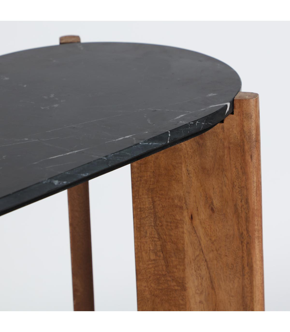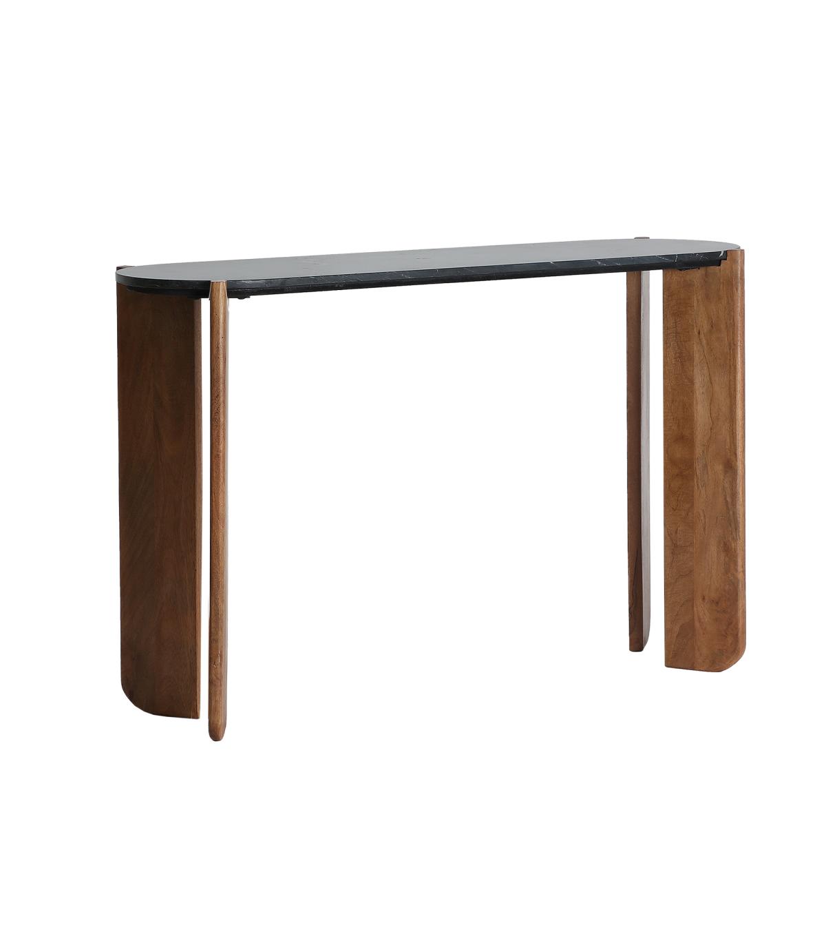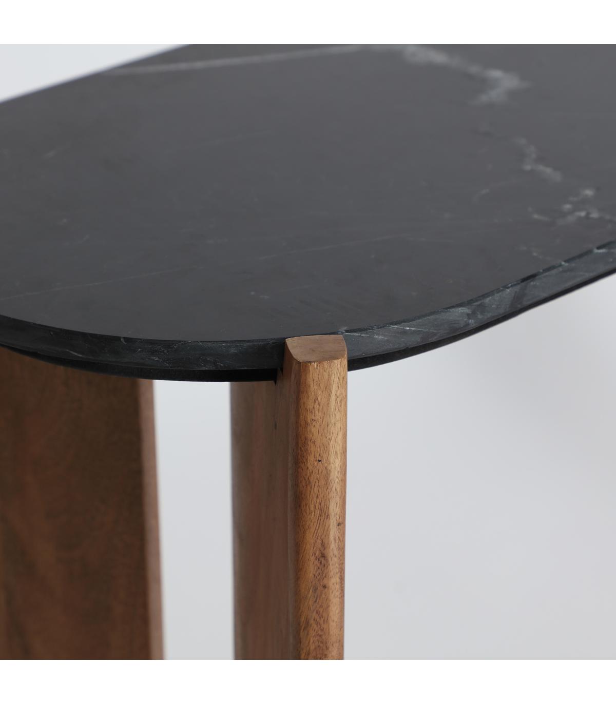 Consola Valigny de estilo contemporáneo, fabricado en mármol en color negro con acabado veteado, combinado con madera de mango en color marrón. Producto desmontable.