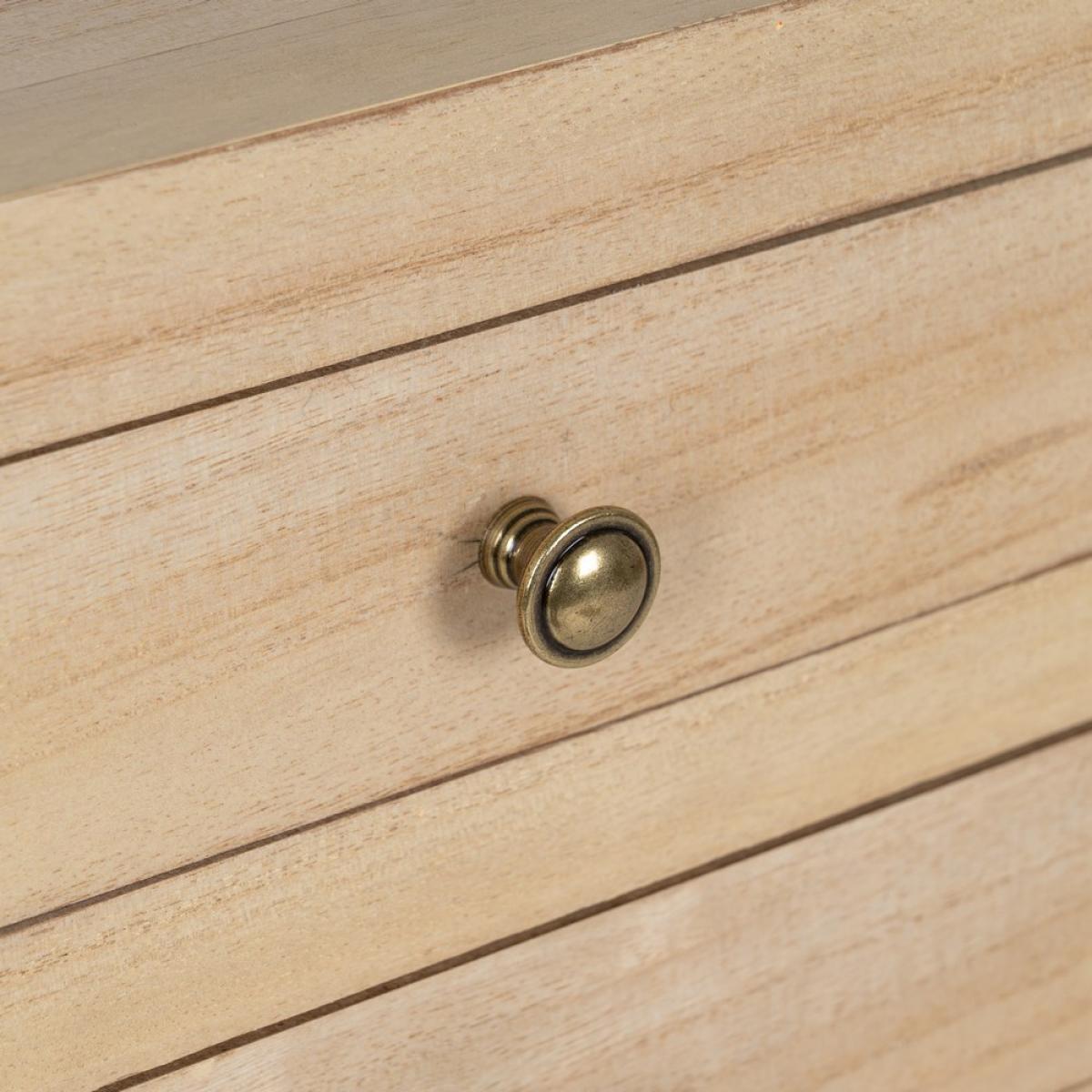 CONSOLA NATURAL DM-MADERA 63 X 26 X 85 CM Material: estructura principal Dm - revestido con madera de paulonia. Altura patas: 65cm. Medida cajones: 26x24x6cm.