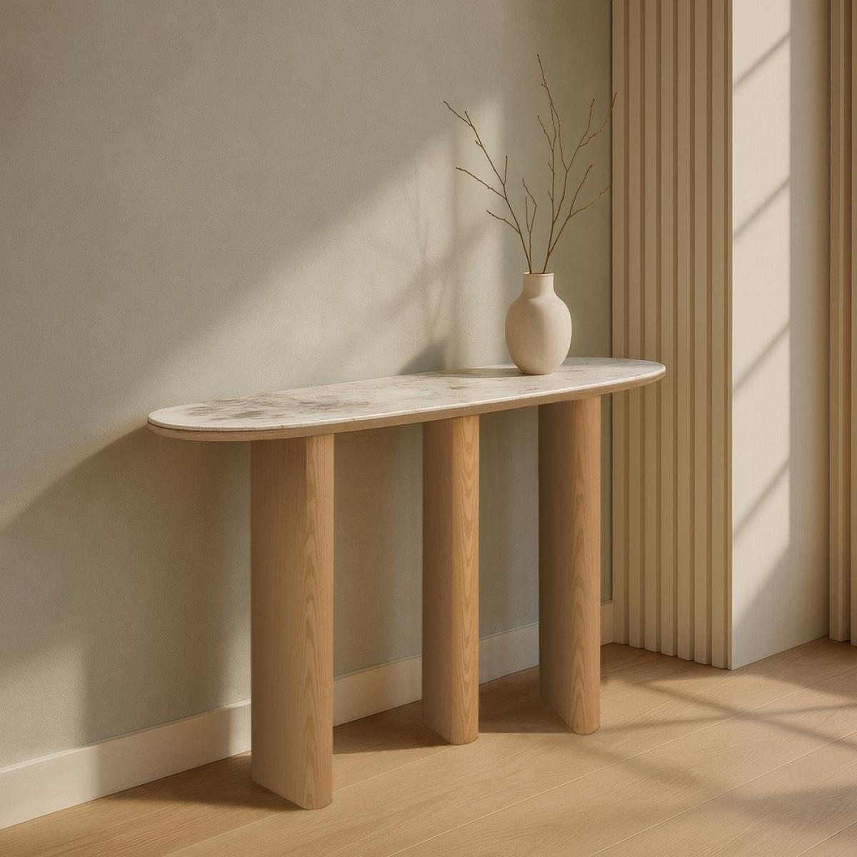 CONSOLA NATURAL DM ENTRADA 150 X 39,50 X 80 CM Material: DM. Altura patas: 79cm.