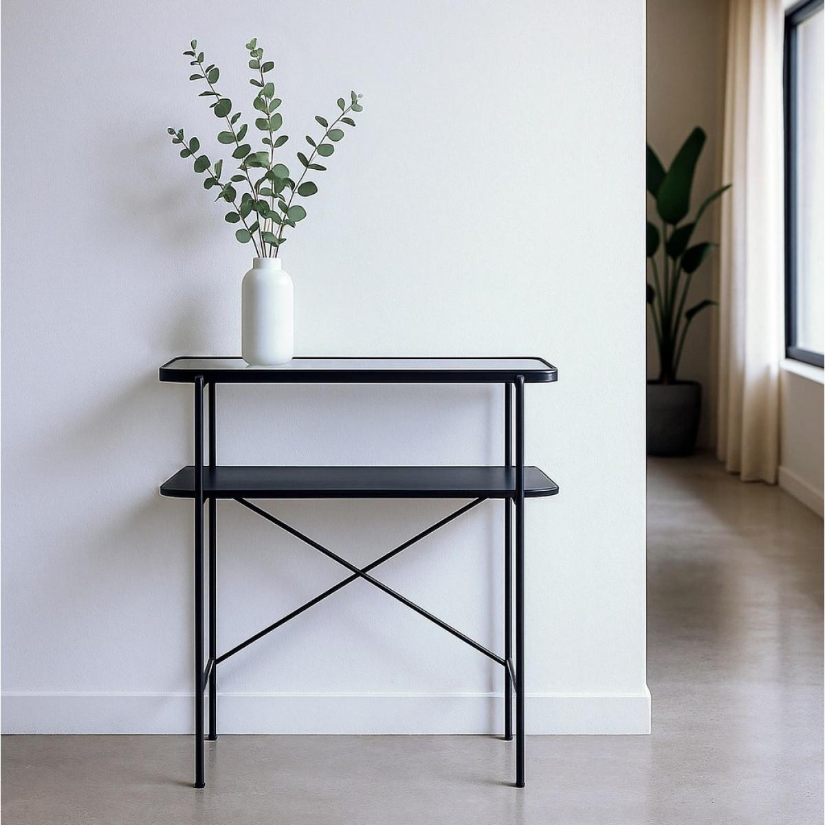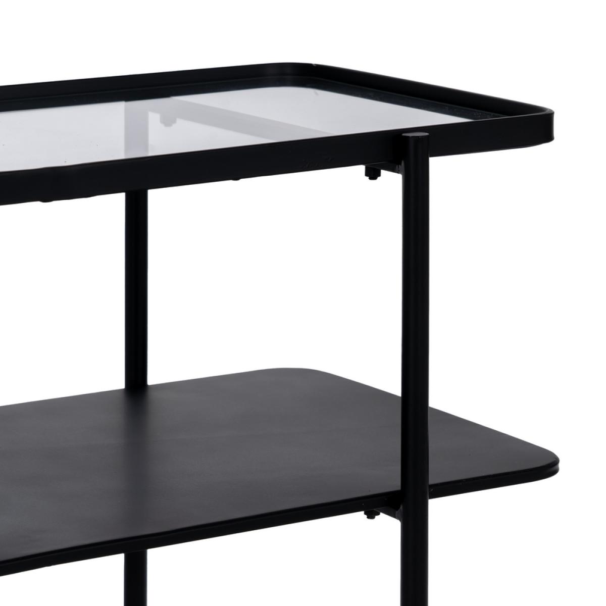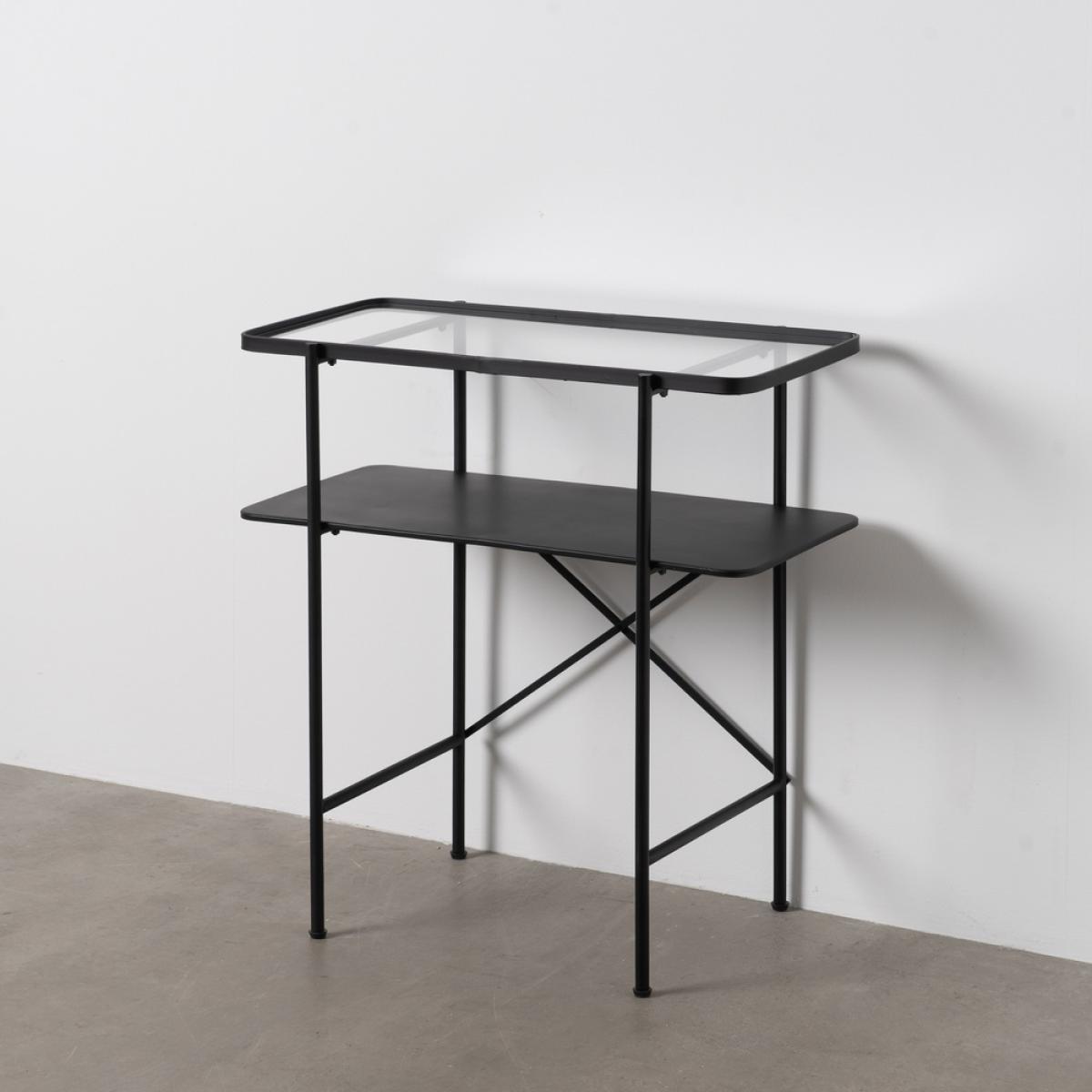 CONSOLA NEGRO METAL-CRISTAL 70 X 33,50 X 75 CM Material: hierro - cristal Para montar. Altura hueco: 20cm.