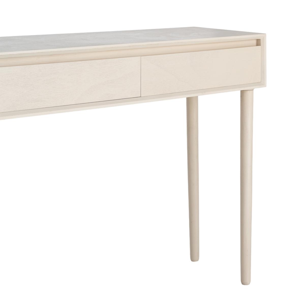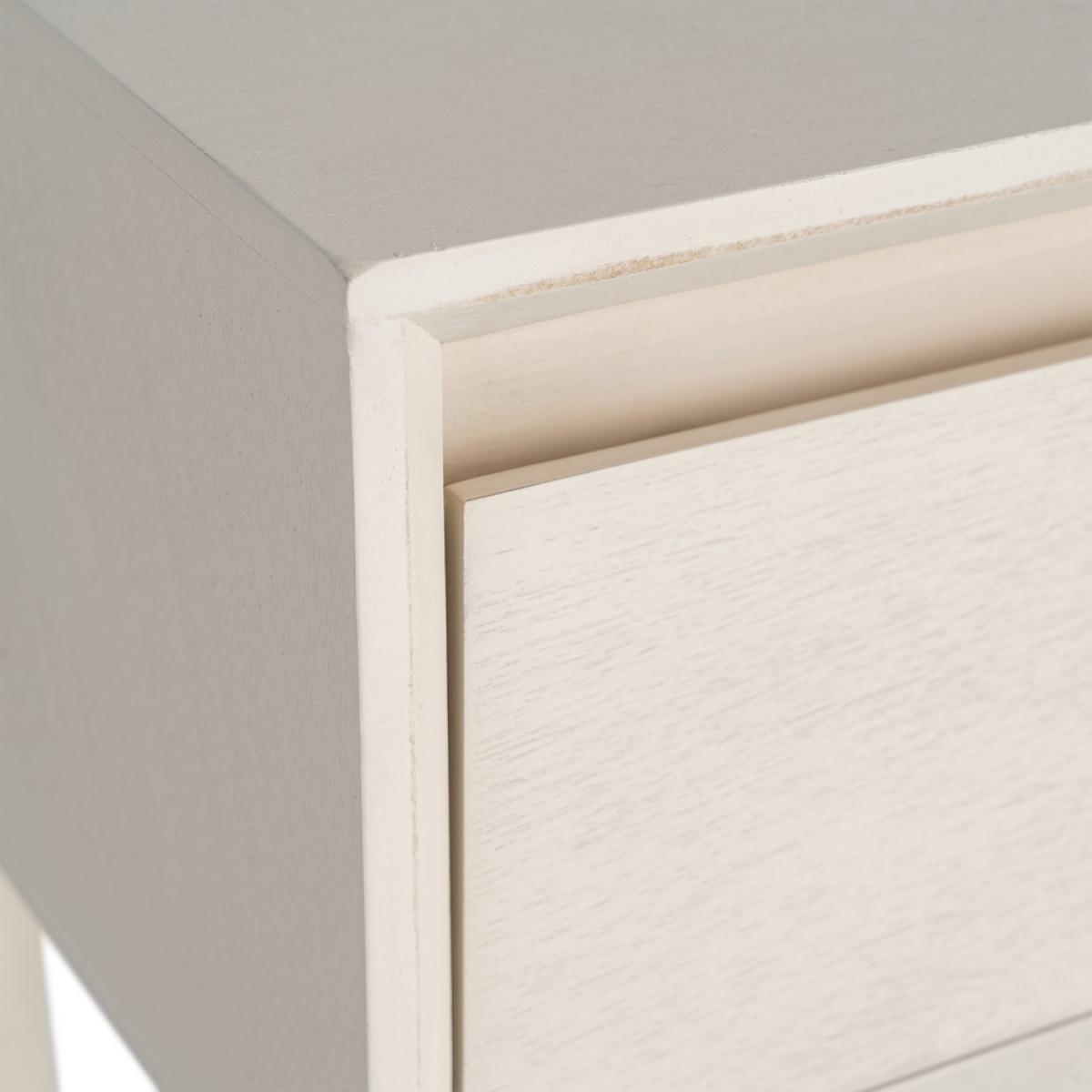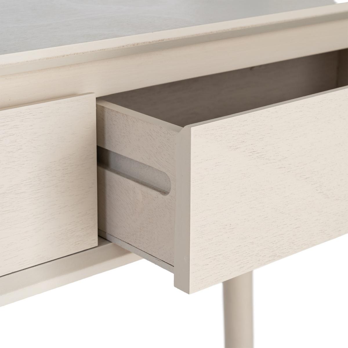 CONSOLA CREMA DM ENTRADA 90 X 35 X 75 CM Material: Dm. Medida cajones: 72x15cm. Altura patas: 23cm.
