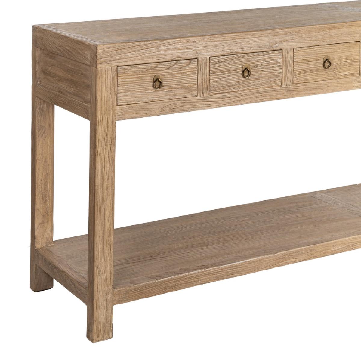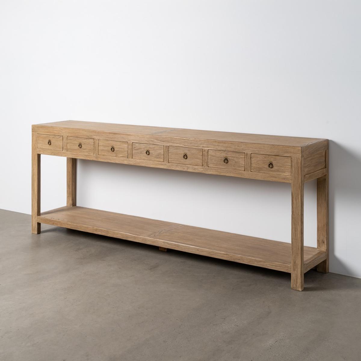 CONSOLA MADERA DE OLMO ENTRADA 240 X 45 X 90 CM Material: madera de olmo reciclada. Cajones: 28,5x12cm. Altura hueco: 51,5cm. Altura patas: 10cm.