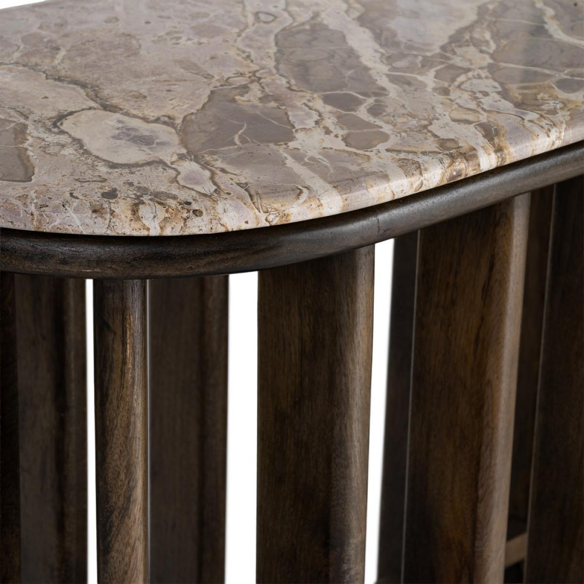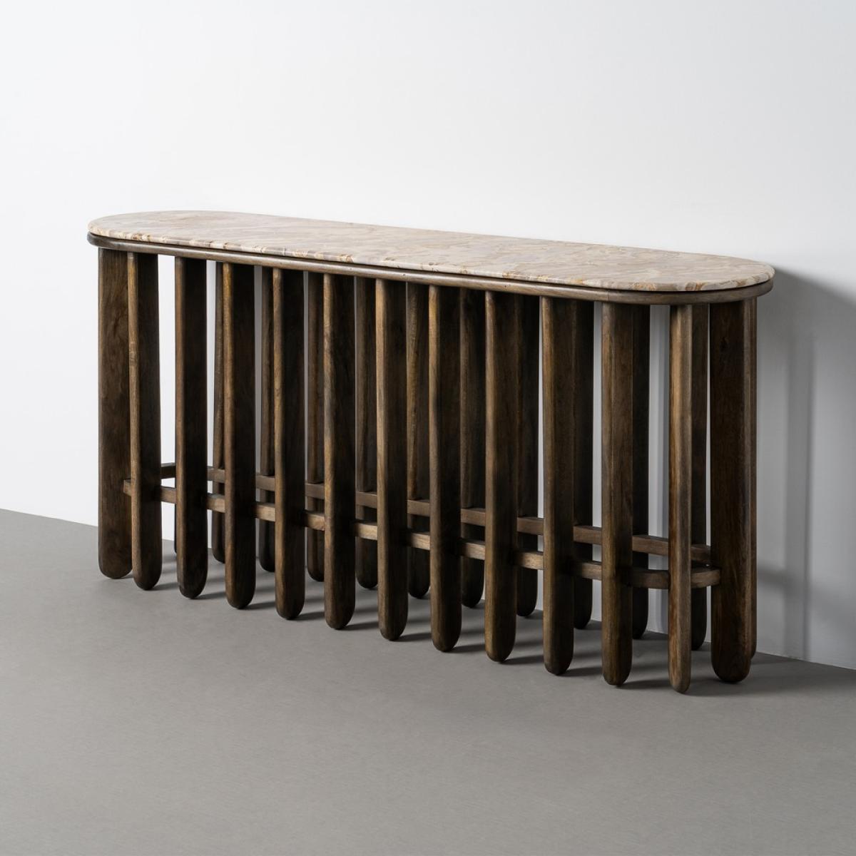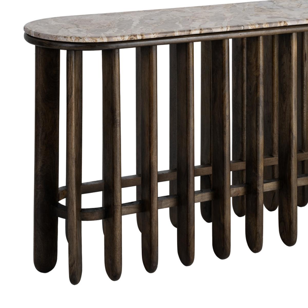 CONSOLA MADERA-MÁRMOL SALÓN 160 X 40 X 76 CM Material: madera de mango, mármol. Grosor mármol: 1,5cm. El mármol es un material natural que puede tener variaciones en su aspecto.