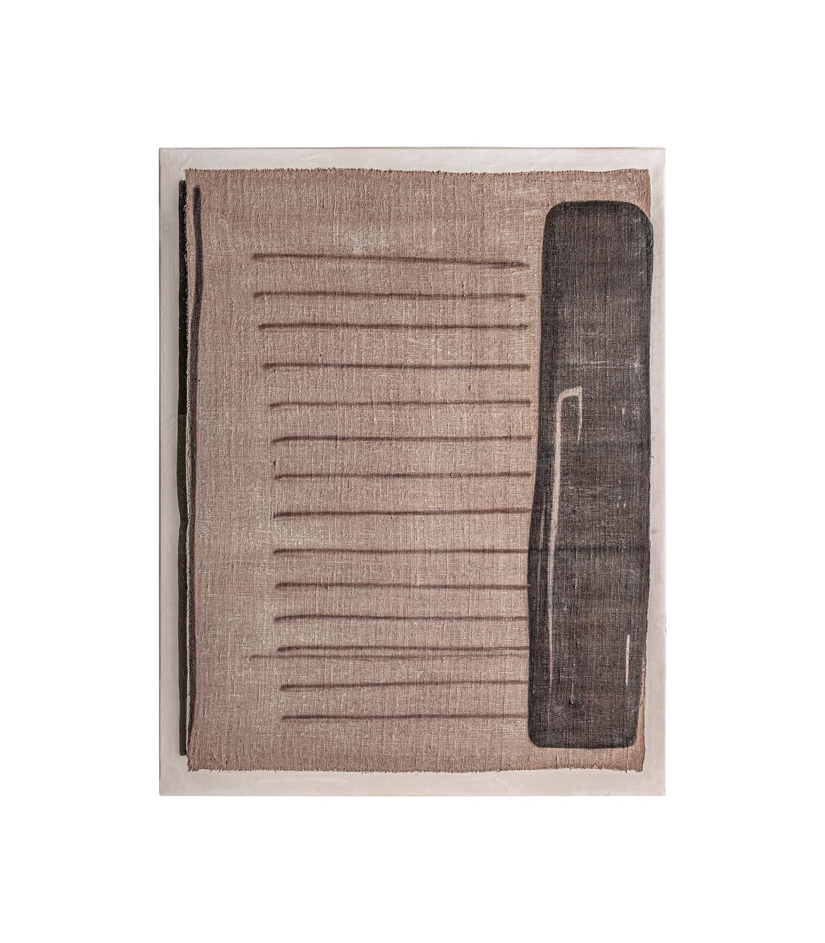 Lienzo Marcelo de estilo contemporáneo fabricado en lienzo en color beige combinado con madera tropical.