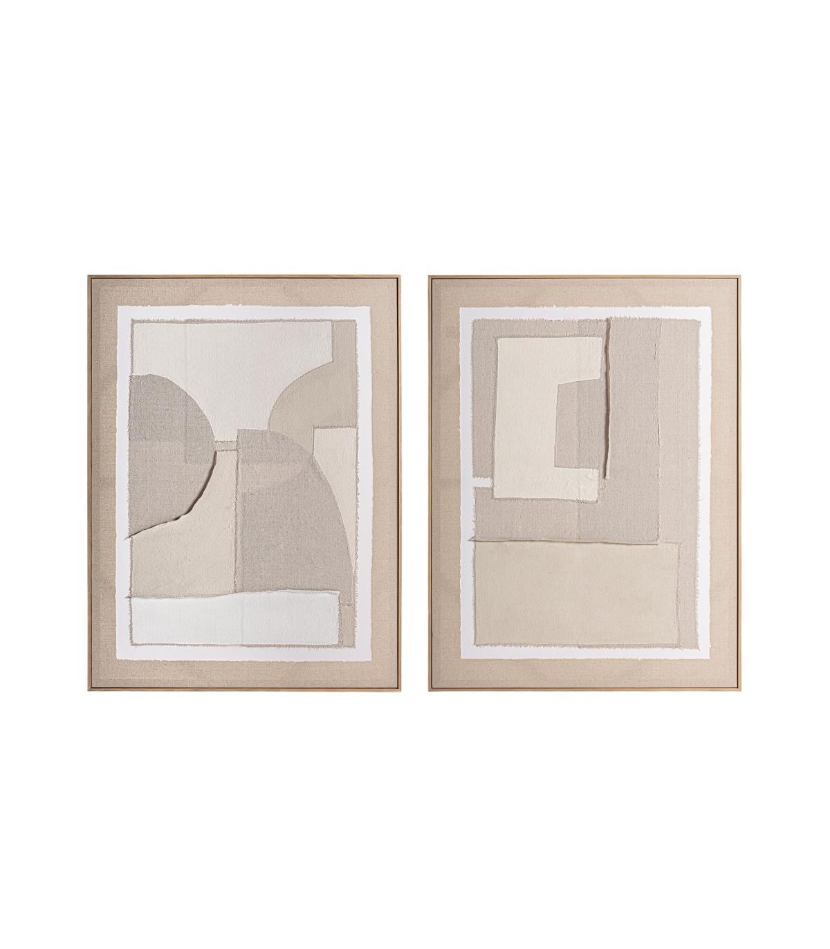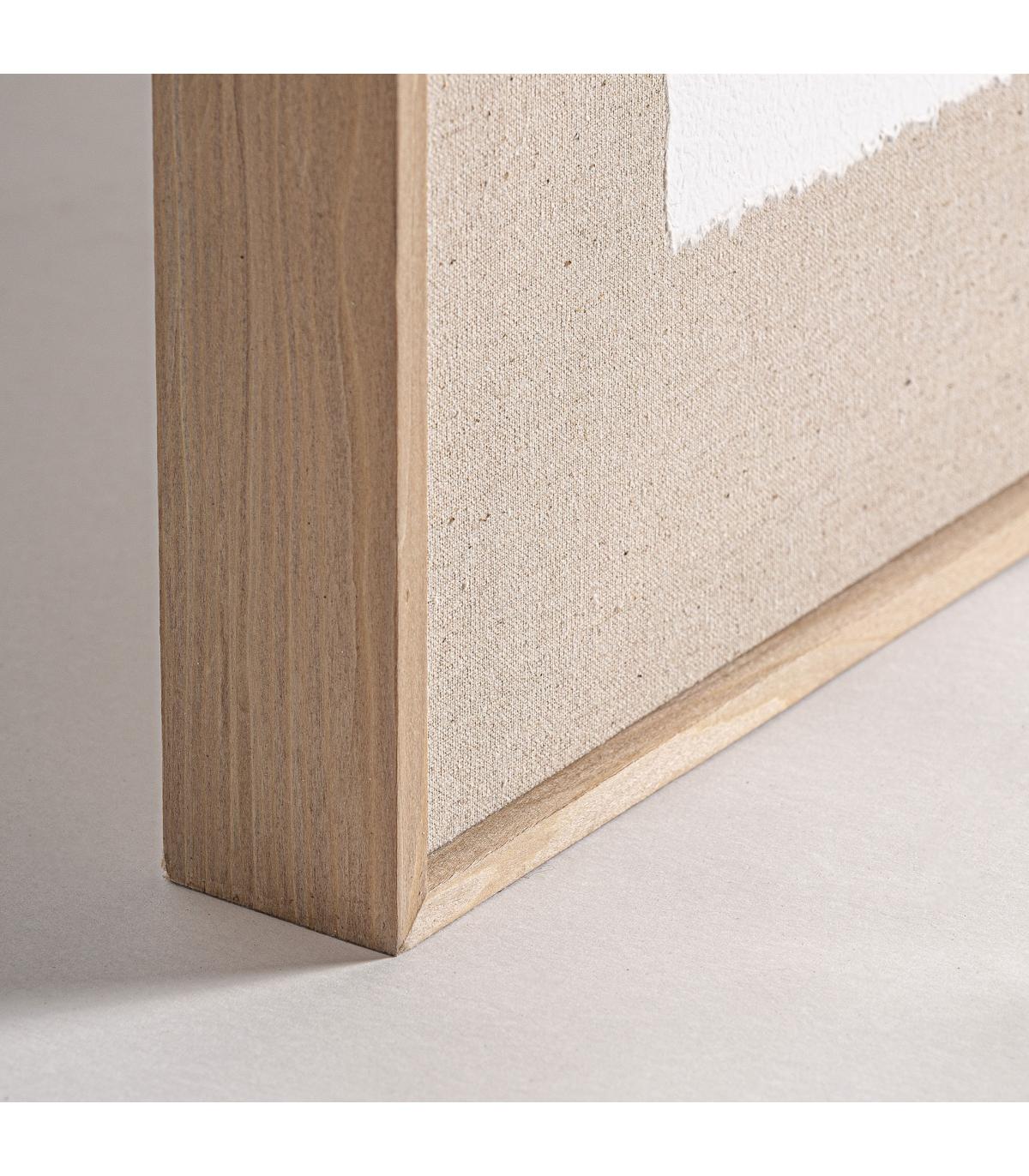 Cuadro j 2 Daray de estilo contemporáneo fabricado en lienzo en color tonos neutros con acabado artesanal combinado con madera de pino en color marrón.