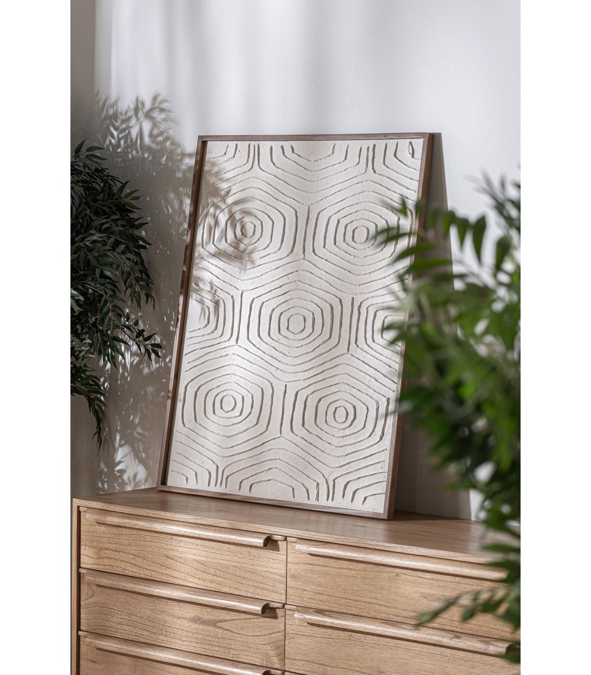 Cuadro rectangular patrick, en color blanco, de estilo contemporáneo. Fabricado en lienzo, combinado con madera de paulownia.