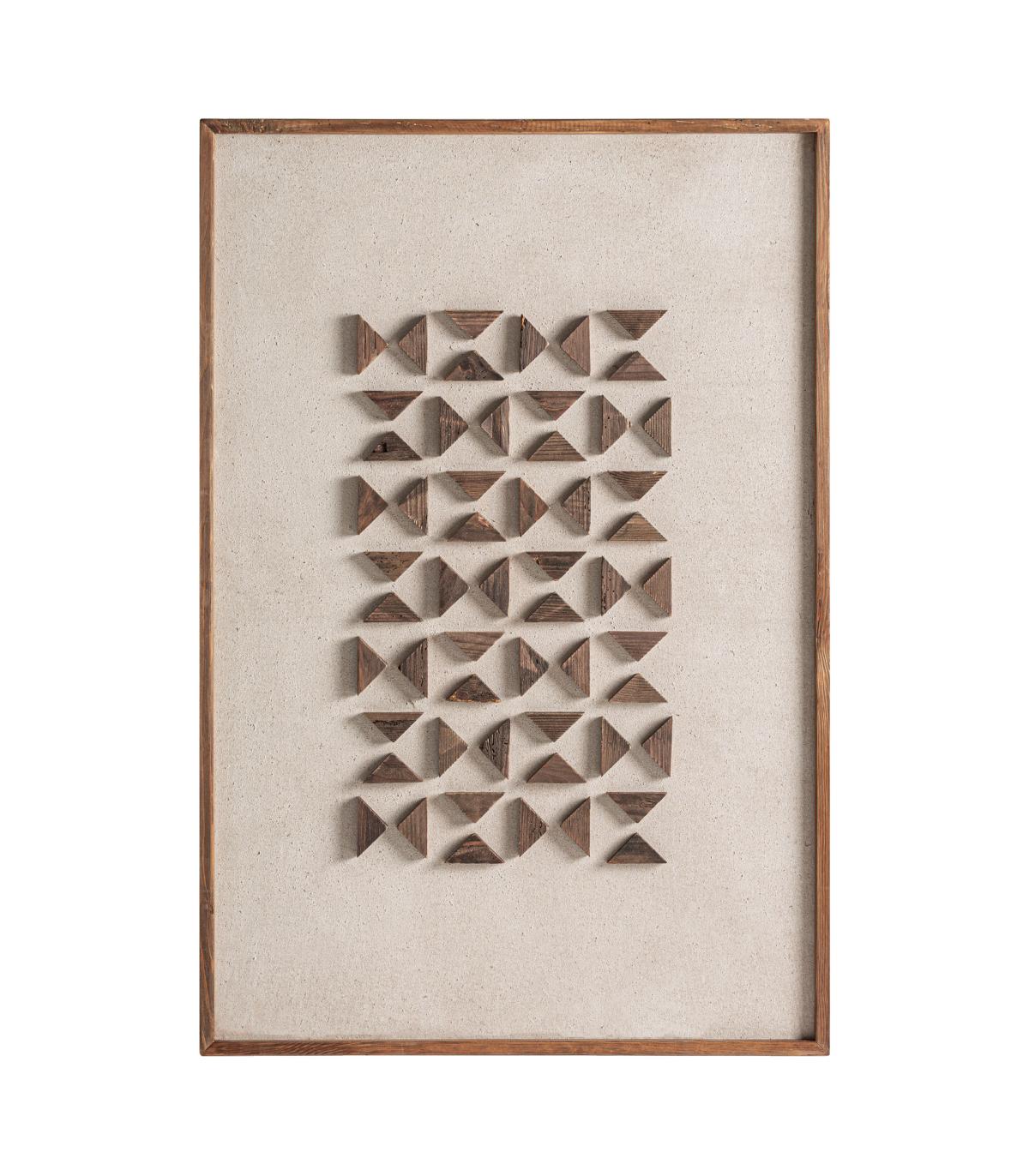 Cuadro fabricado en madera de pino reciclado en color marrón en color blanco roto.