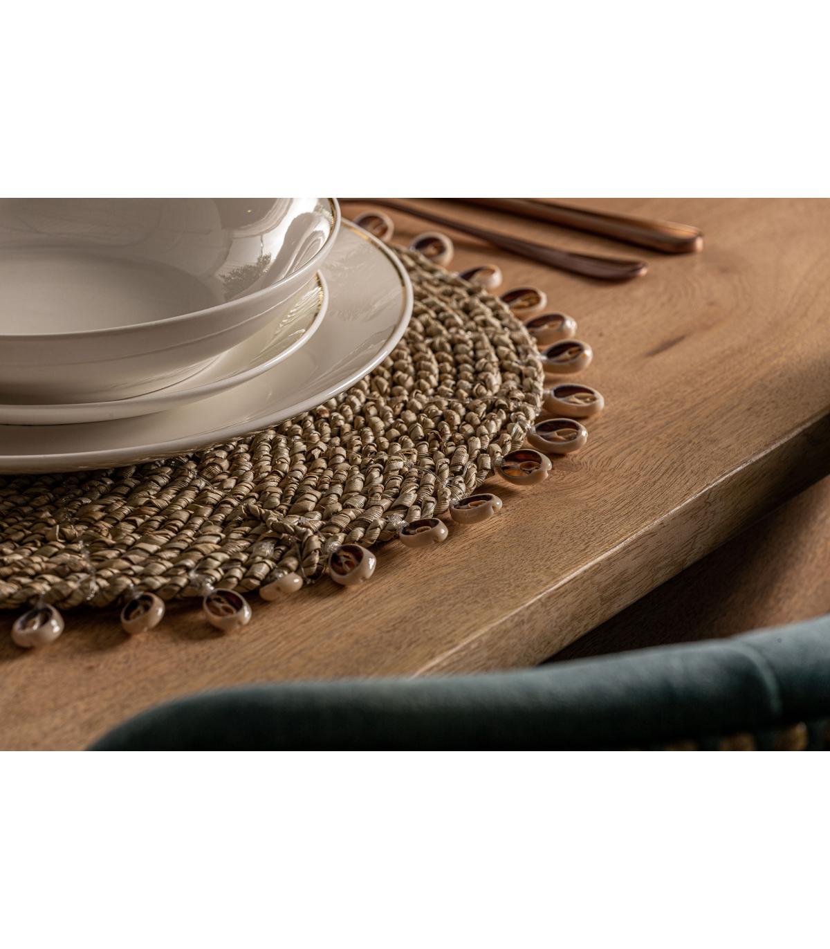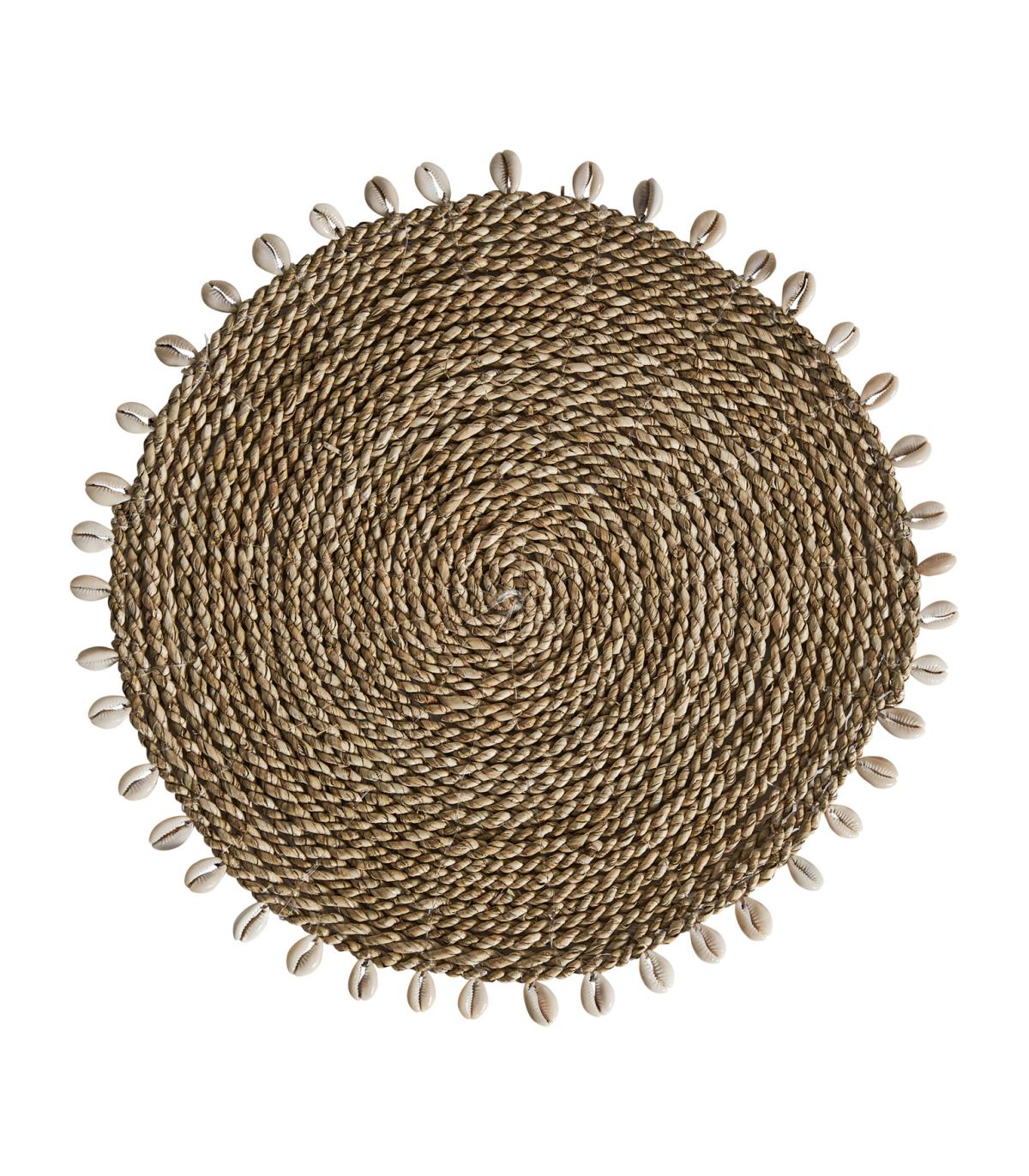 Salvamantel Roel de estilo clásico fabricado en cuerda en color marrón combinado con concha.