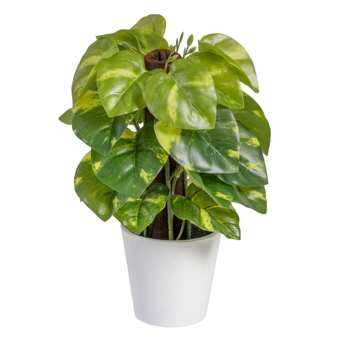 POTOS VERDE "PVC" 16 X 16 X 25 CM PLANTA: Materiales:Polietileno y hierro. MACETERO: Color blanco. Medidas: Alto:7.5CM Base:5.5X5.5CM Boca:8X8CM. Materiales: Polietileno. Relleno:Cemento.