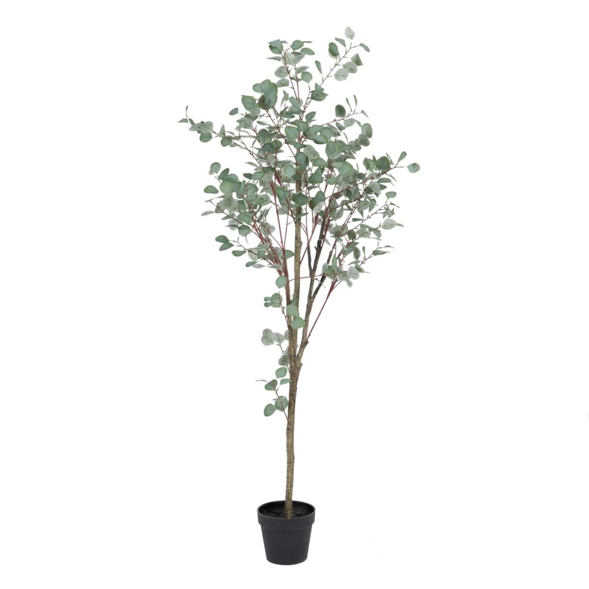 PLANTA EUCALIPTO VERDE 80 X 82 X 180 CM PLANTA: Materiales:Poliéster y hierro. MACETERO: Color negro. Medidas: Alto:17CM Base:14X14CM Boca:20X20CM. Materiales: Polietileno. Relleno:Cemento.