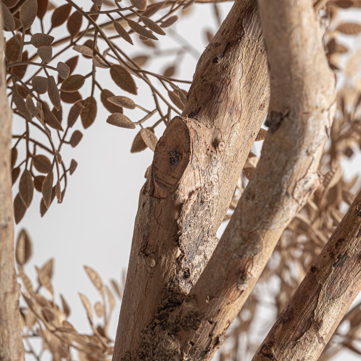 Planta Olivo de estilo clásico fabricado en polietileno en color tonos en marrón combinado con polipropileno en color marrón y madera.