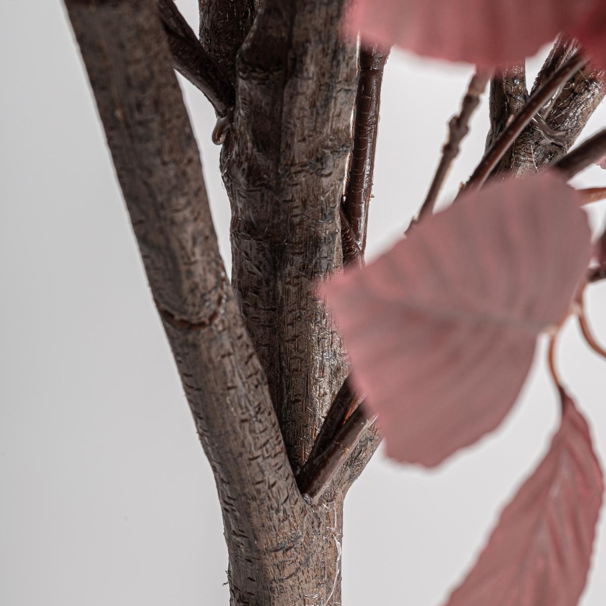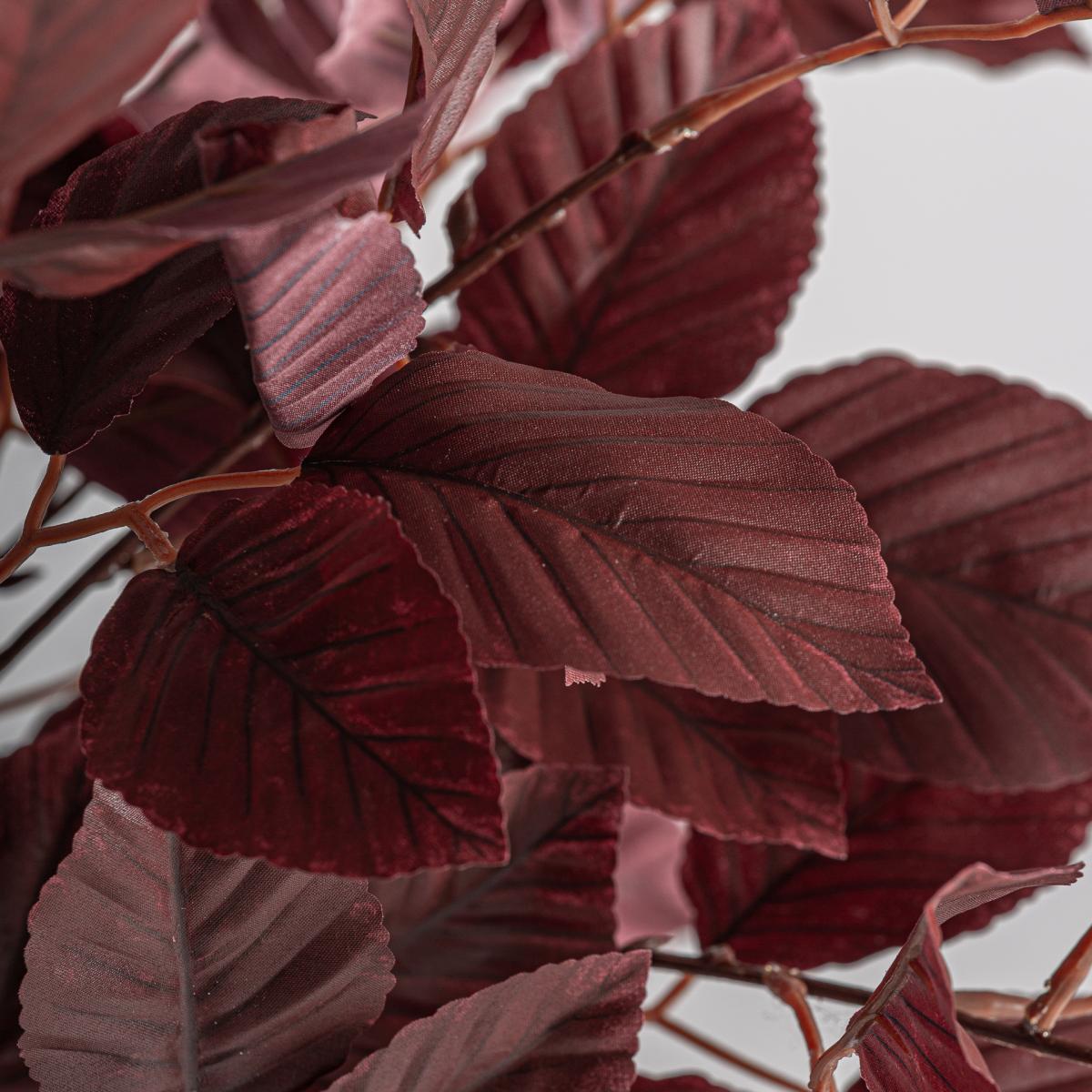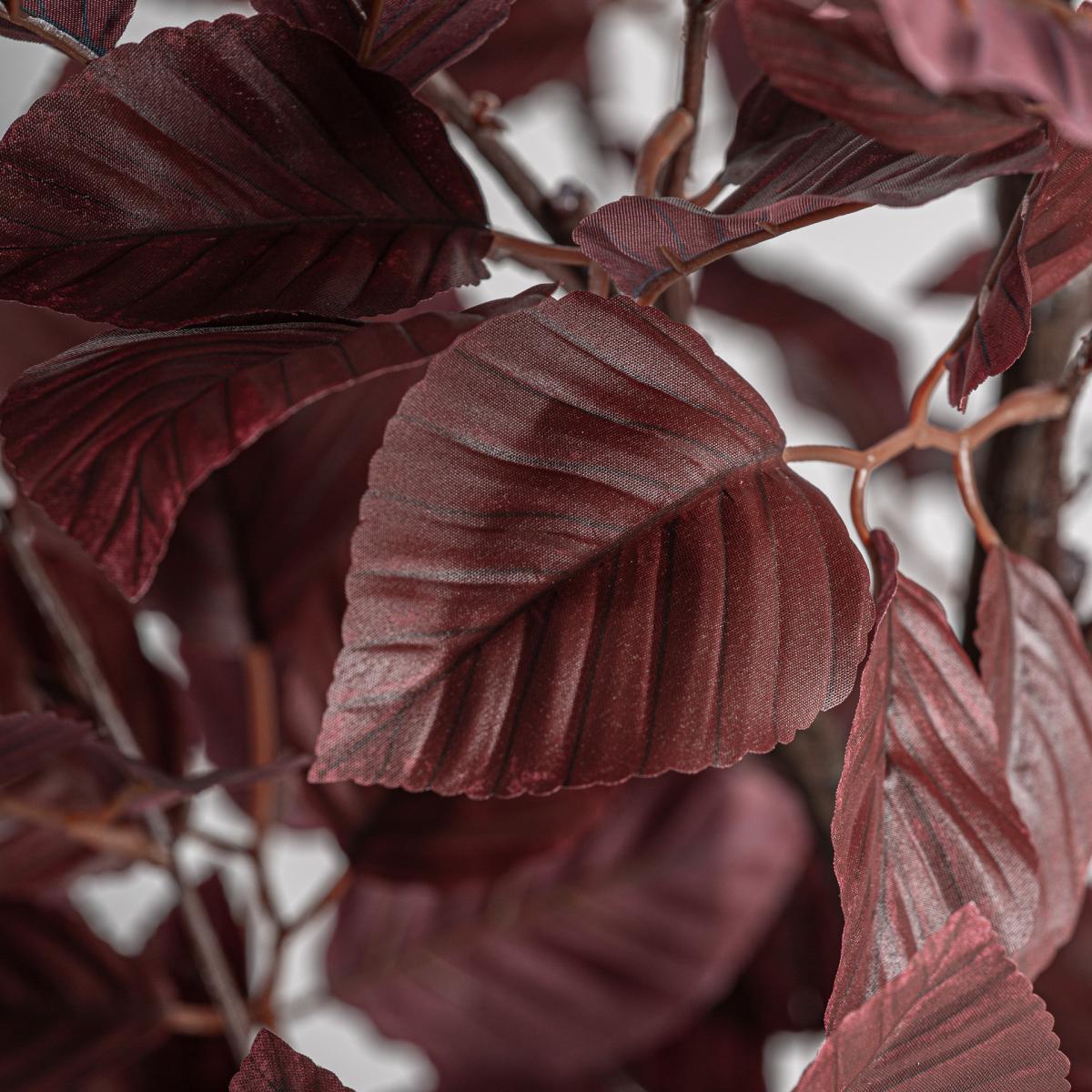 Planta Haya de estilo clásico fabricado en poliéster en color rojo oscuro combinado con polietileno en color negro y cemento en color negro.