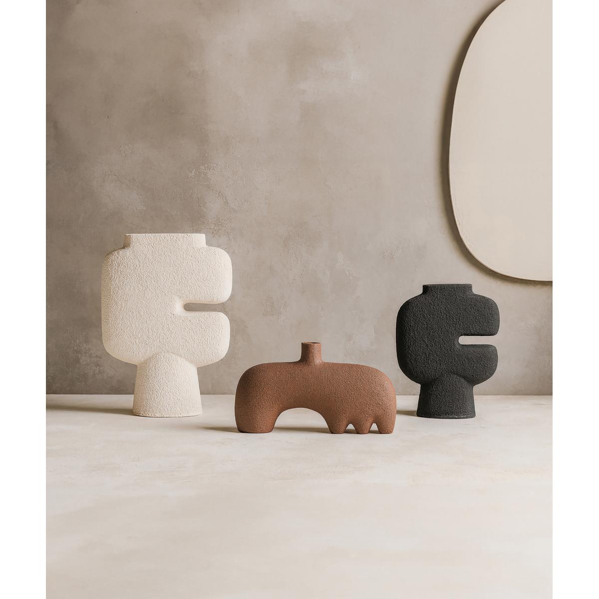 Jarrón Niveo de estilo contemporáneo, fabricado en resina en color blanco con acabado rugoso.