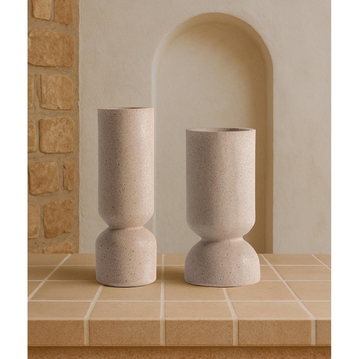 Jarrón Aubra de estilo contemporáneo, fabricado en resina en color beige.