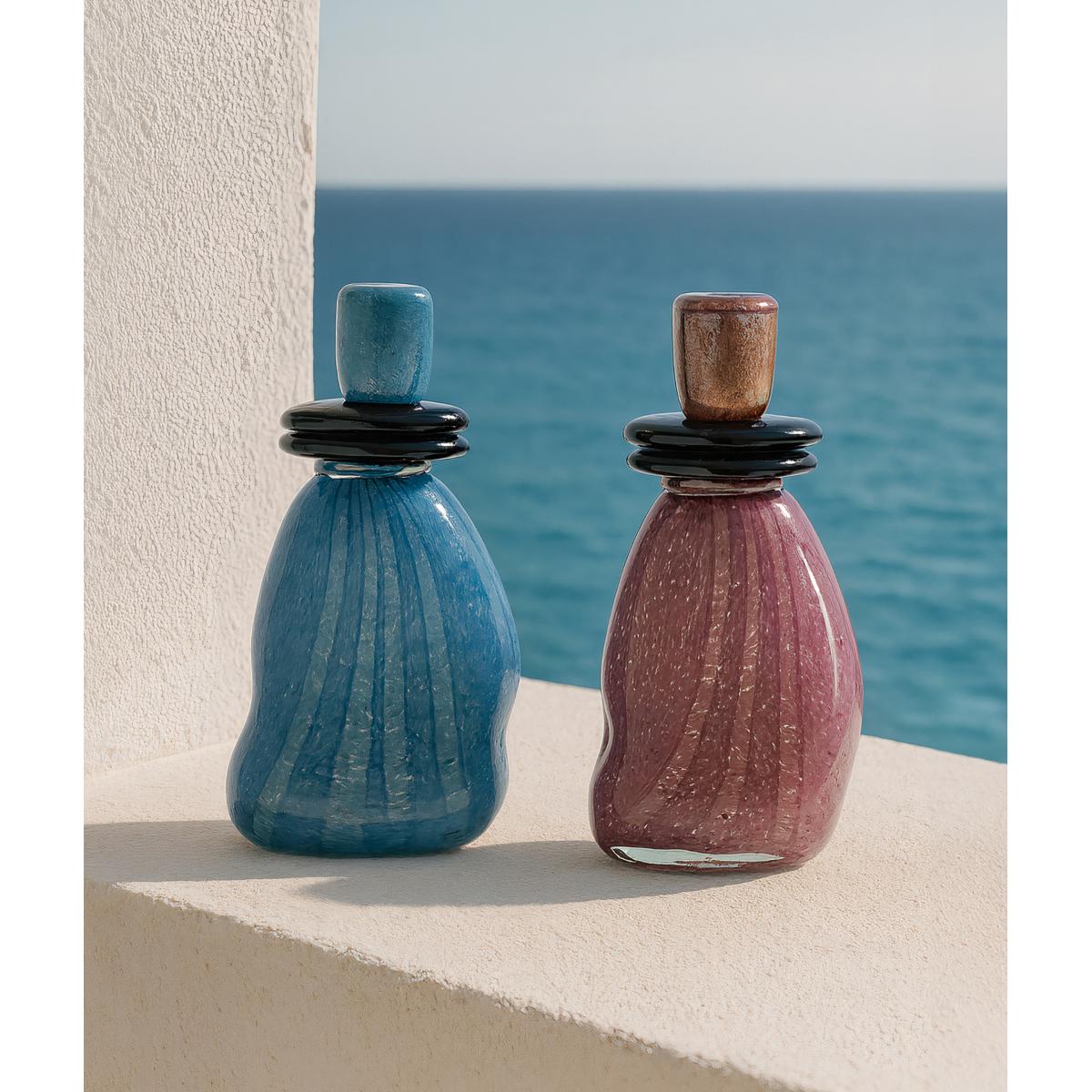 Jarrón, fabricado en vidrio en color morado en color negro.
