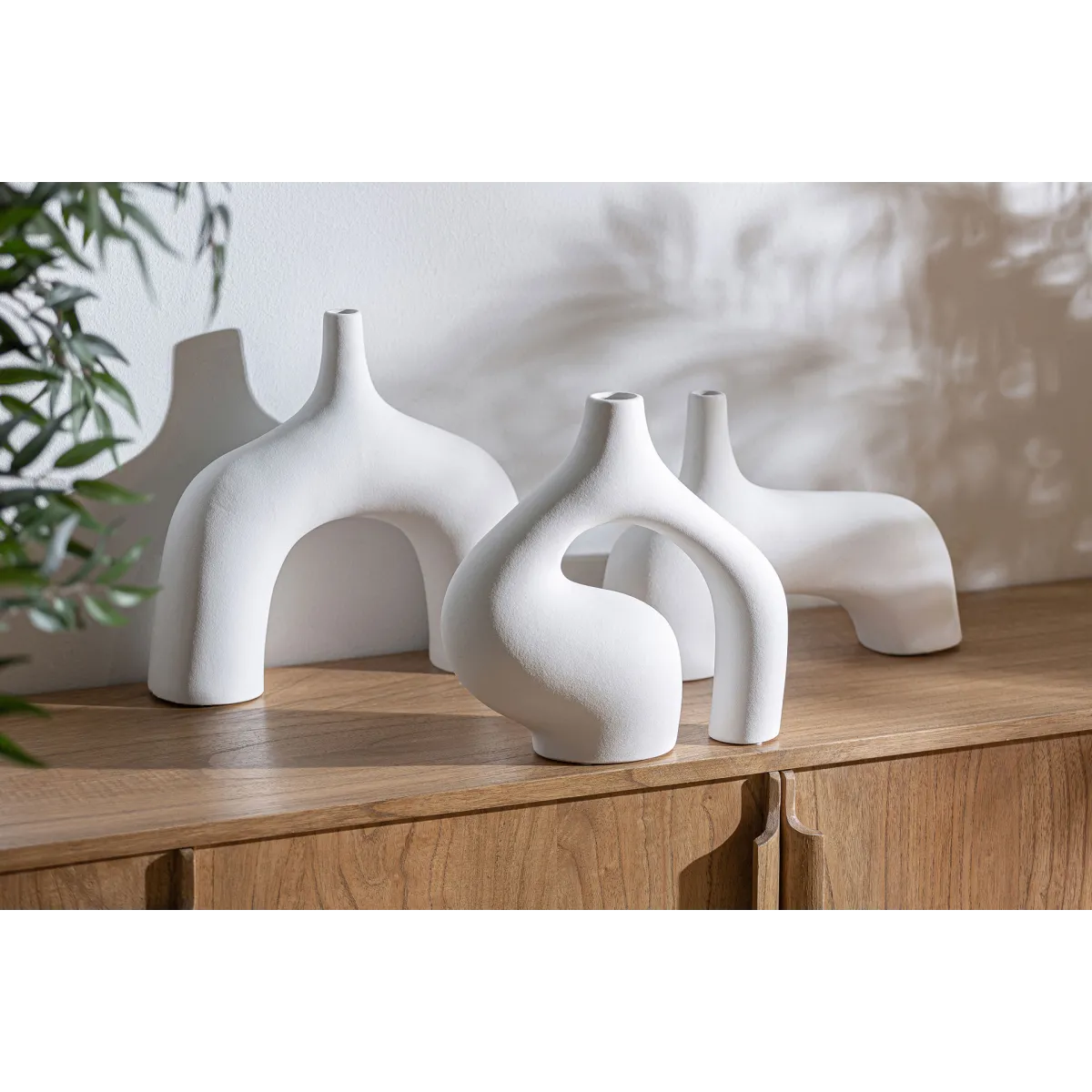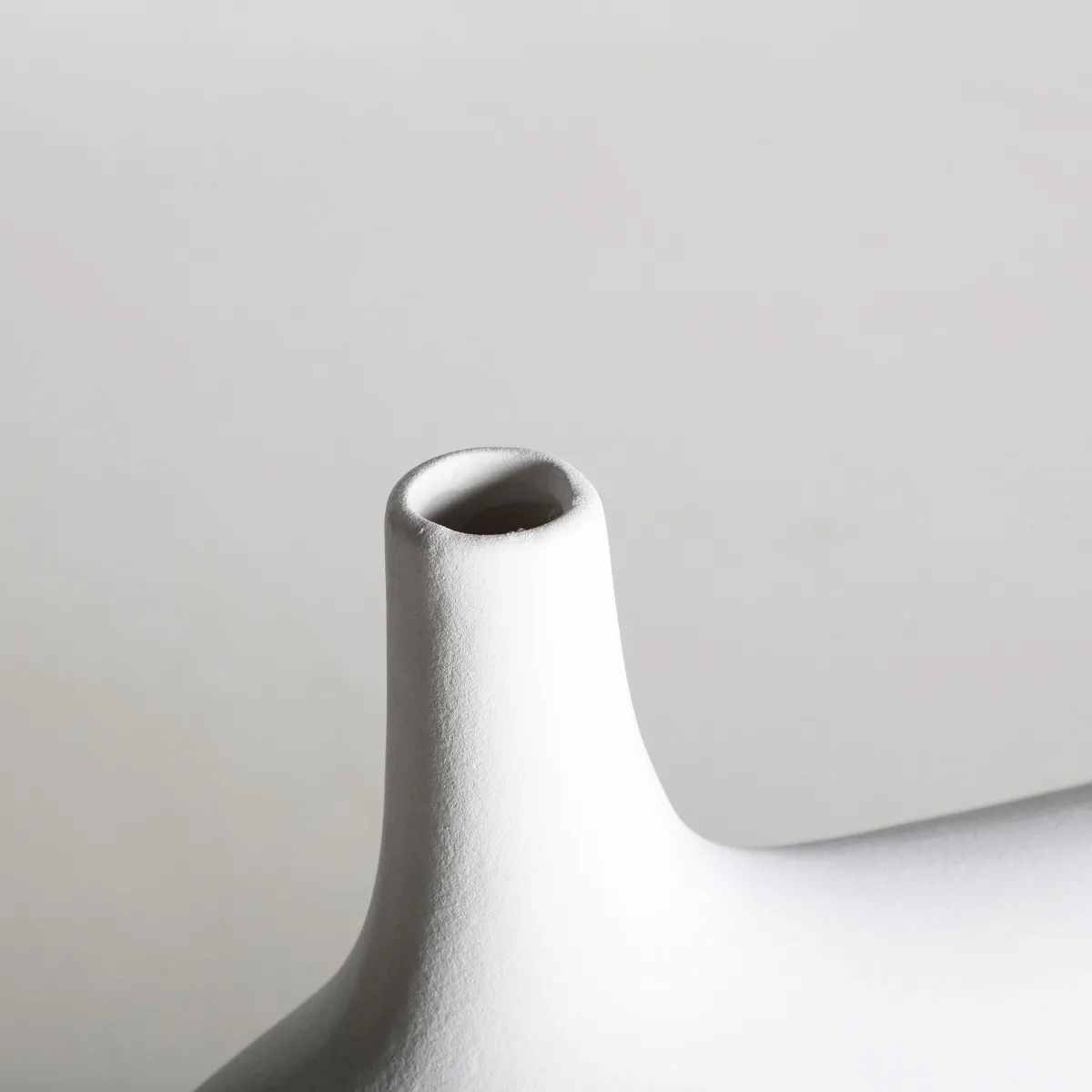 Jarrón irregular zick de estilo contemporáneo, fabricado en cerámica en color blanco.