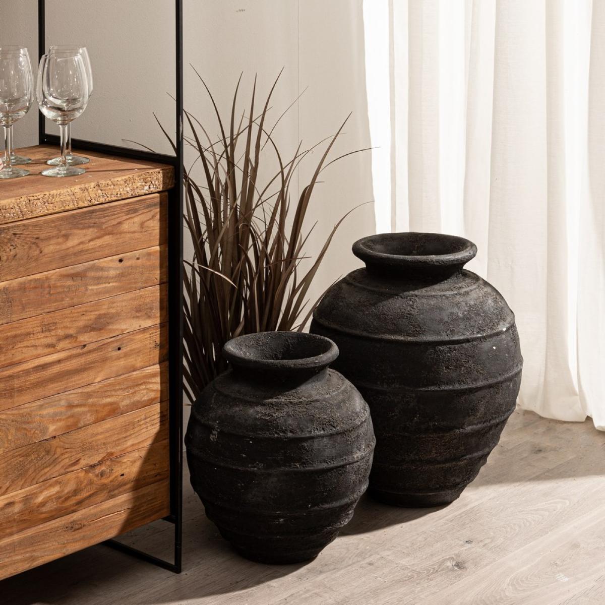 DECORACIÓN - JARRONES Y BANDEJAS 610860 - JARRÓN GRIS FIBRA DE CEMENTO DECORACIÓN 45 X 45 X 51 CM