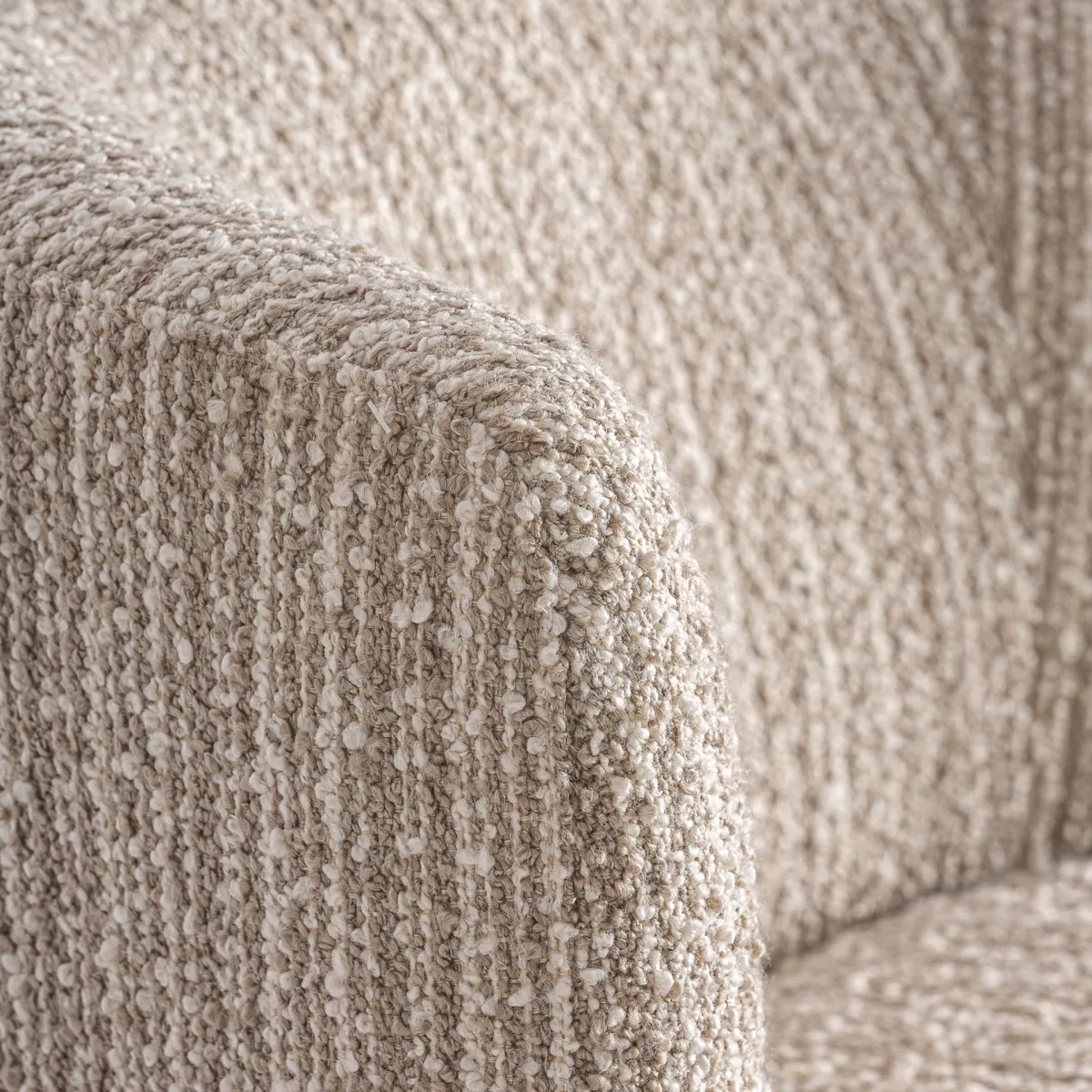 Sillón Nuba de estilo contemporáneo, fabricado en poliéster en color beige.