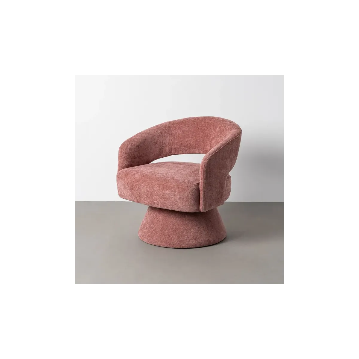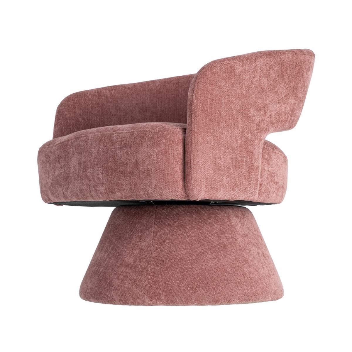 SILLÓN GIRATORIO SALMÓN TEJIDO-MADERA 71 X 68 X 72 CM Material: tejido 100% poliéster - estructura madera conglomerada y hierro - pata pvc. Relleno: foam Altura asiento: 42cm. Altura reposabrazos: 60cm. Para montar. Cumple normativa EN12520:2016