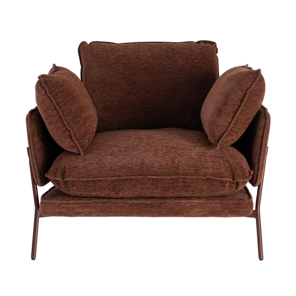 SILLÓN MARRÓN OSCURO TEJIDO-METAL 95 X 80 X 79 CM Material: tejido (100% poliéster). Estructura: Metal. Relleno: foam, densidad asiento 35kgs. Altura asiento: 45cm. Ancho asiento: 54cm. Profundidad asiento: 50cm. Altura respaldo: 43cm. Peso máximo soportado: 150kgs. Cumple la normativa UNEEN16139.