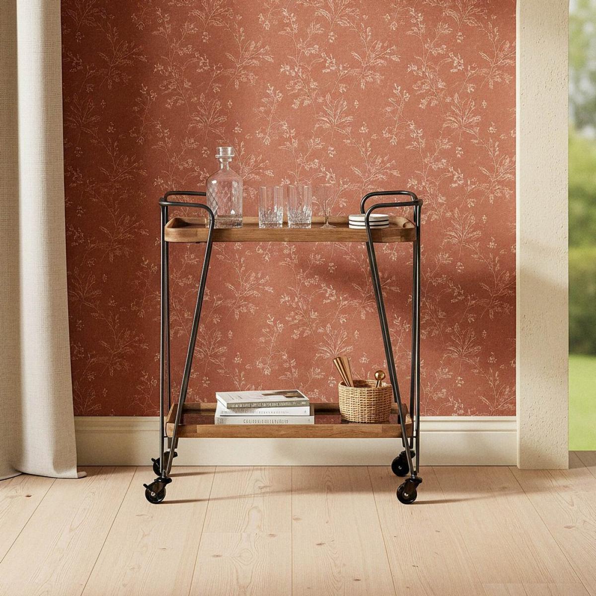 CAMARERA NATURAL-NEGRO METAL-CRISTAL 62 X 38 X 72 CM Material: madera de caucho - hierro - cristal. Precisa montaje.
