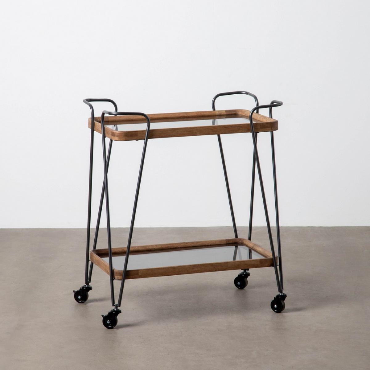 MUEBLE - CAMARERAS 615233 - CAMARERA NATURAL-NEGRO METAL-CRISTAL 62 X 38 X 72 CM