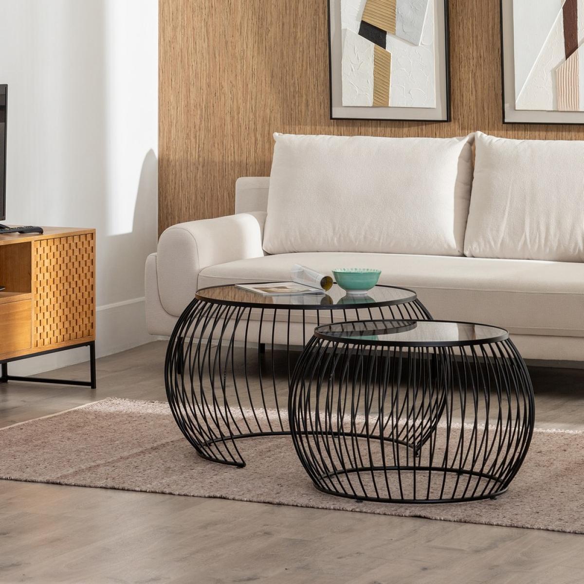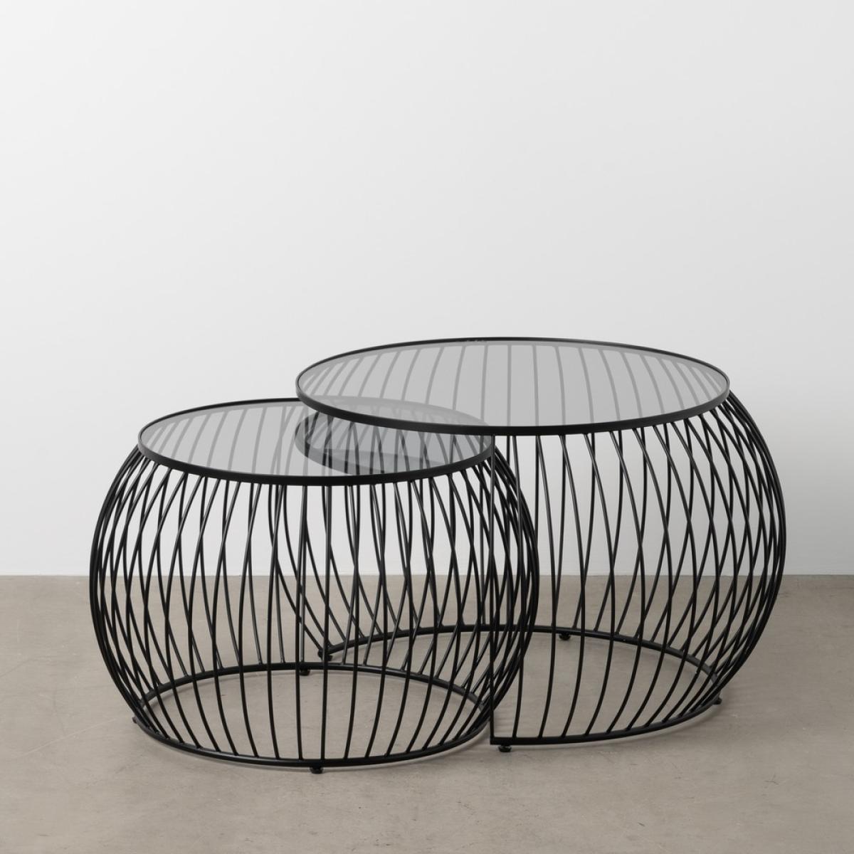 S/2 MESA CENTRO NEGRO METAL-CRISTAL 89 X 80 X 51 CM Material: hierro - cristal No precisa montaje 89x80x51 - 70x70x46cm.