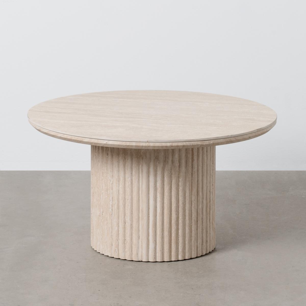 MESA CENTRO BEIGE PIEDRA MDF DECORACIÓN 70 X 70 X 38,50 CM Material sobre: Piedra sinterizada artificial, MDF y papel. Material pata: MDF y papel. Medidas sobre: 70x70x3cm Altura total: 38,5cm Altura de la pata:35cm. Peso máximo soportado: 50kgs.