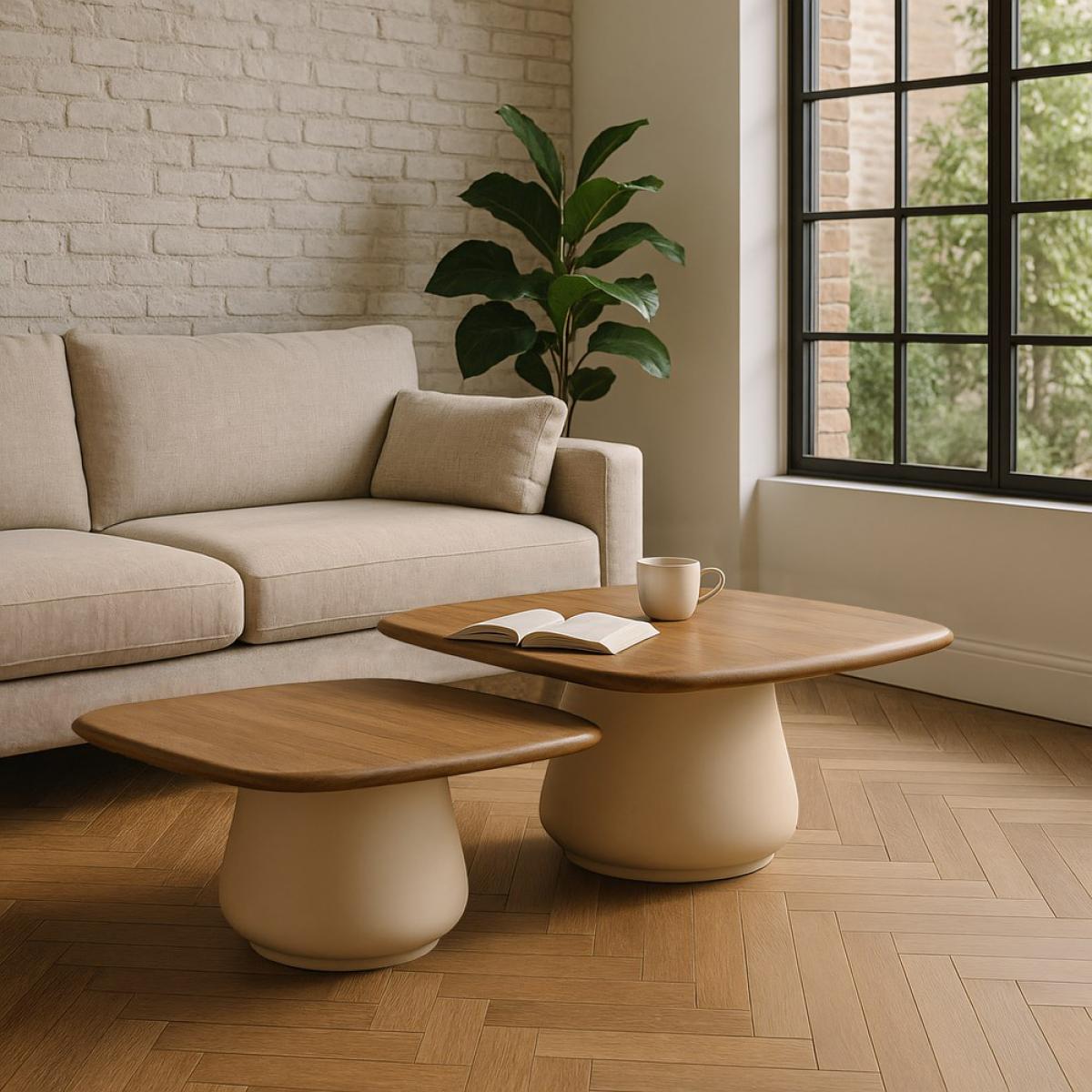 S/2 MESA CENTRO MADERA-METAL SALÓN 90 X 90 X 40 CM Material: madera de mango, hierro. Medidas: 90x90x40cm- 70x70x37cm.