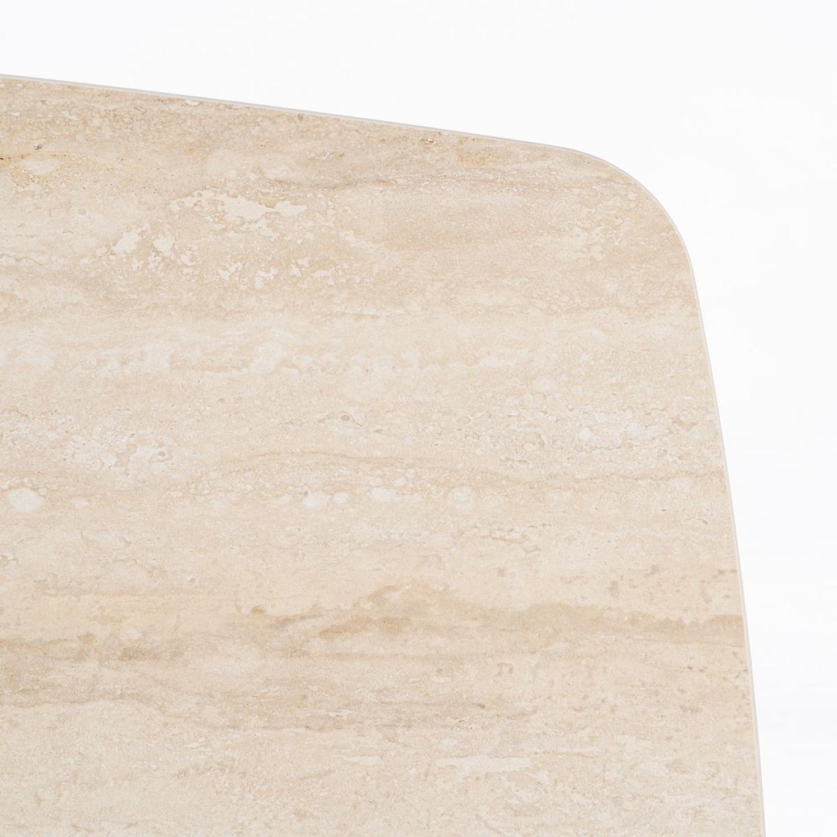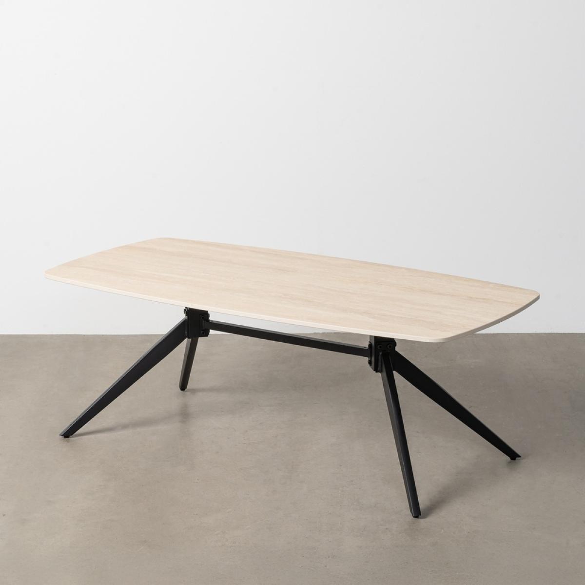 MESA CENTRO TRAVERTINO 120 X 60 X 42 CM Material: piedra sinterizada imitación mármol travertino - metal Patas: hierro (negro) Para montar.