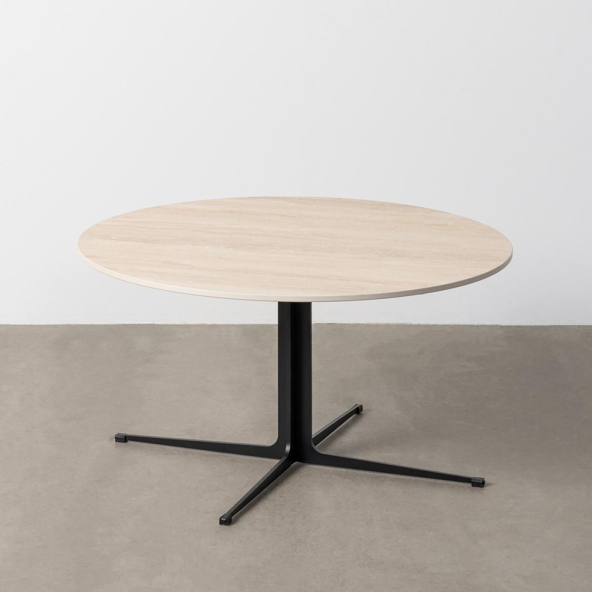 MESA CENTRO TRAVERTINO 80 X 80 X 42 CM Material: piedra sinterizada imitación mármol travertino - metal Patas: hierro (negro) Para montar.