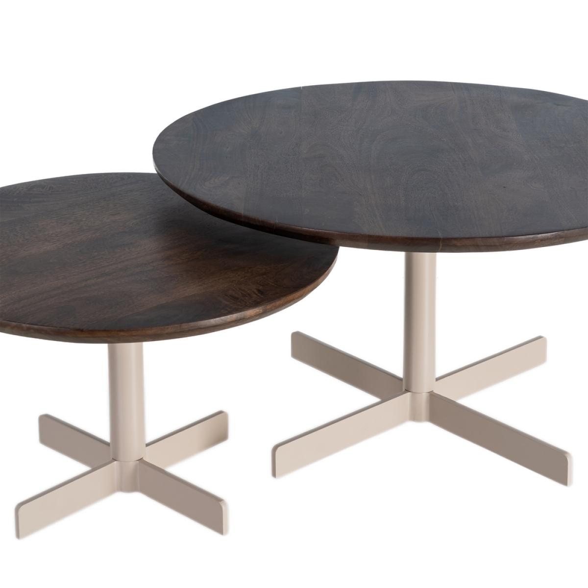 S/2 MESA CENTRO BEIGE-MARRÓN HIERRO 80 X 80 X 45 CM MESITA GRANDE:80X80X45CM. MESITA PEQUEÑA:60X60X38CM.