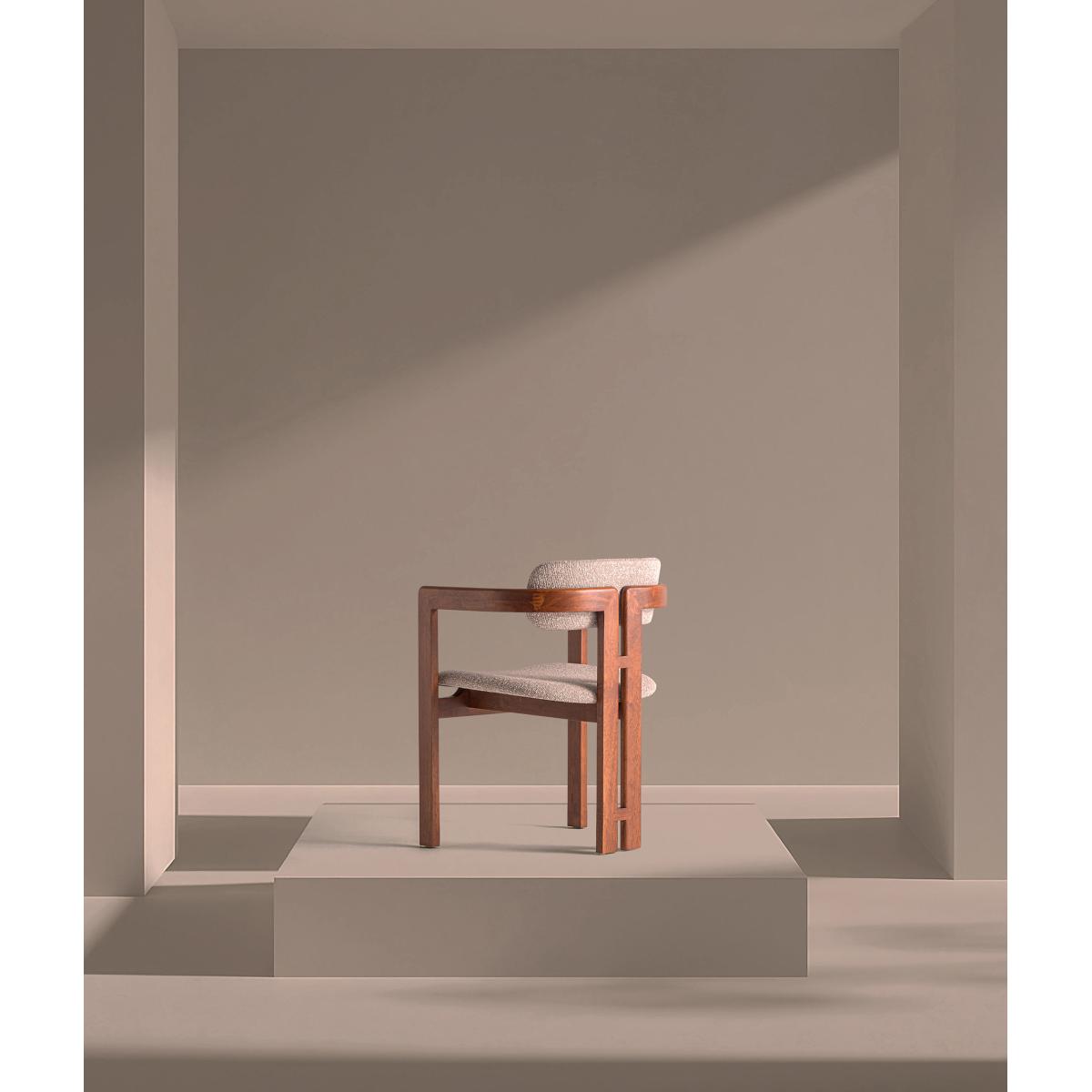 Silla, fabricado en madera de fresno en color marrón, combinado con poliéster en color gris.