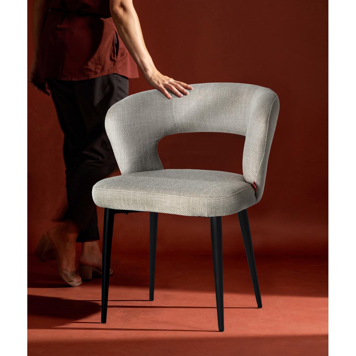Silla, fabricado en poliéster en color naranja, combinado con madera contrachapada y hierro en color negro.