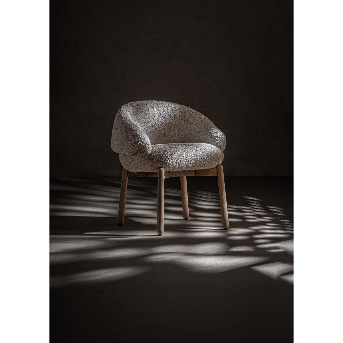 Silla Jacquard fabricado en madera roble en color marrón combinado con poliéster en color gris.