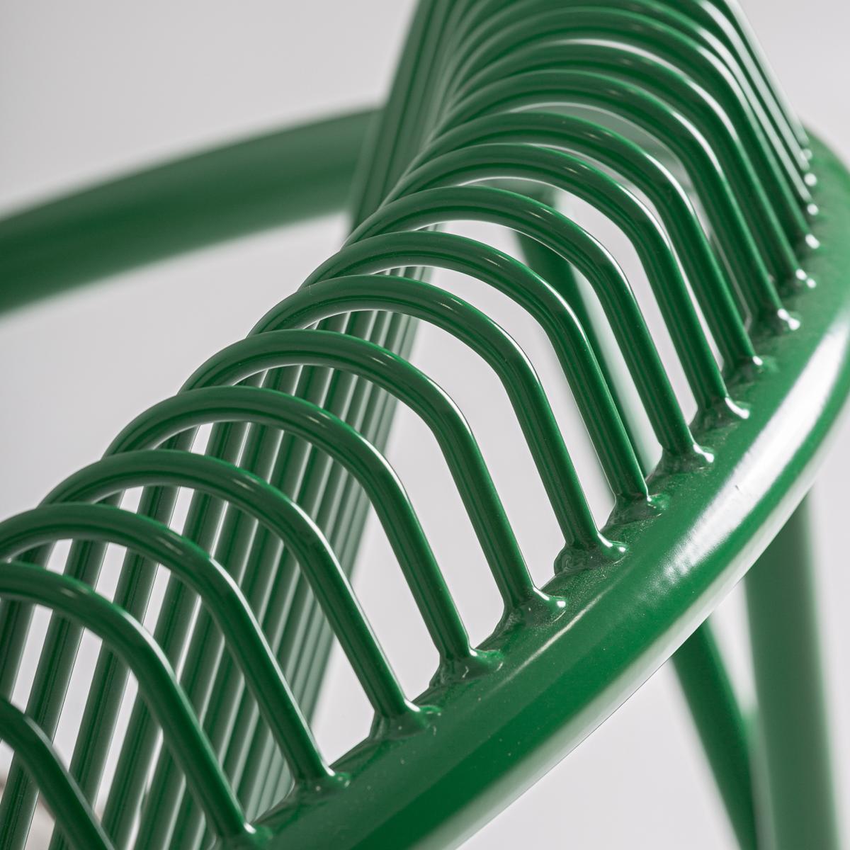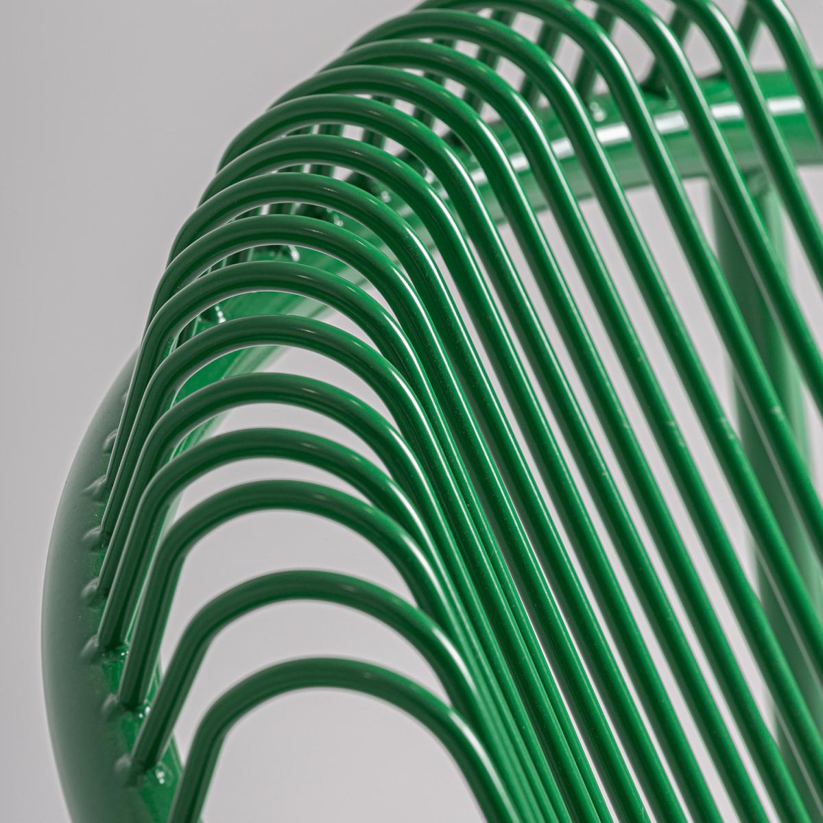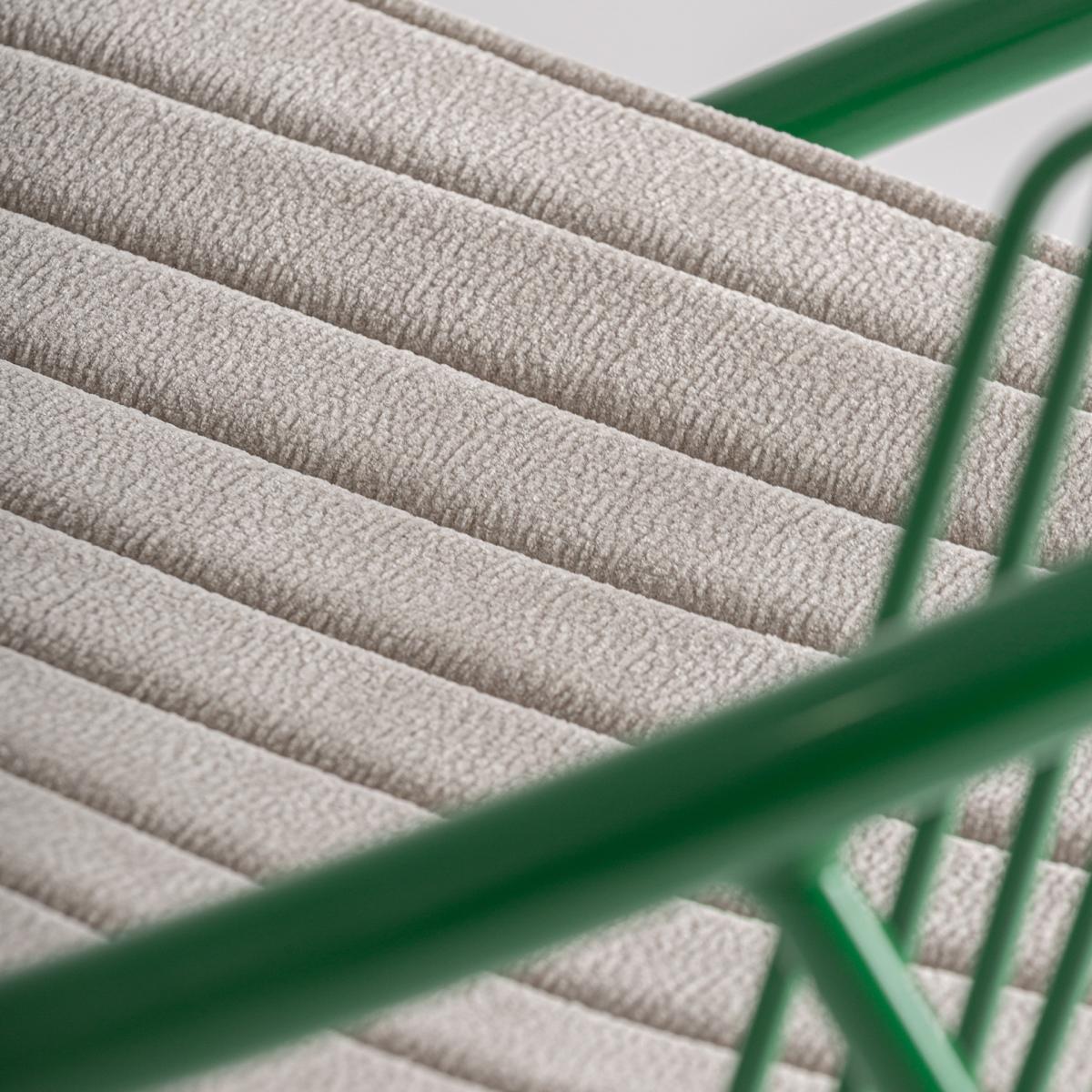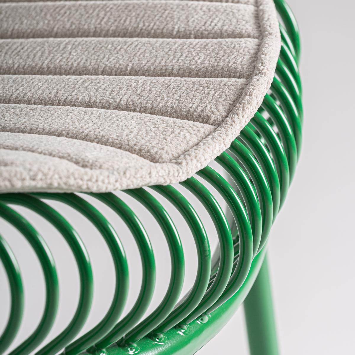 Silla Bienz de estilo contemporáneo, fabricado en hierro en color verde, combinado con poliéster en color beige. Producto desmontable.