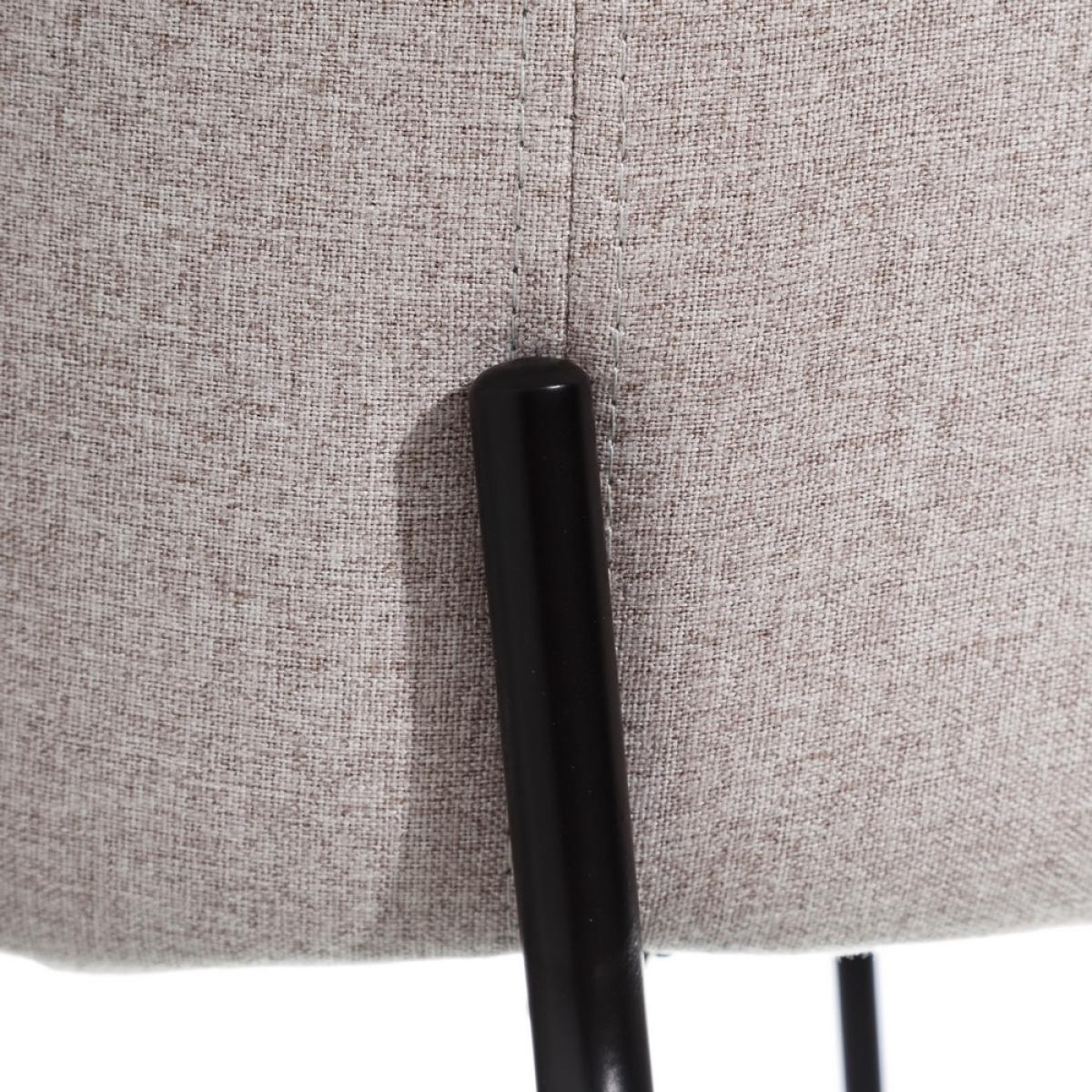 SILLA BEIGE TEJIDO-METAL MODERNO SALÓN 50 X 54 X 78,50 CM Material: 100% poliéster Patas: metal hierro Relleno: esponja, densidad 18Kg./m3 Altura asiento: 46cm. Profundidad asiento: 43cm. Ancho asiento: 47cm. Altura patas: 41.5cm. No apilable. Cumple la normativa EN12520 (uso doméstico).