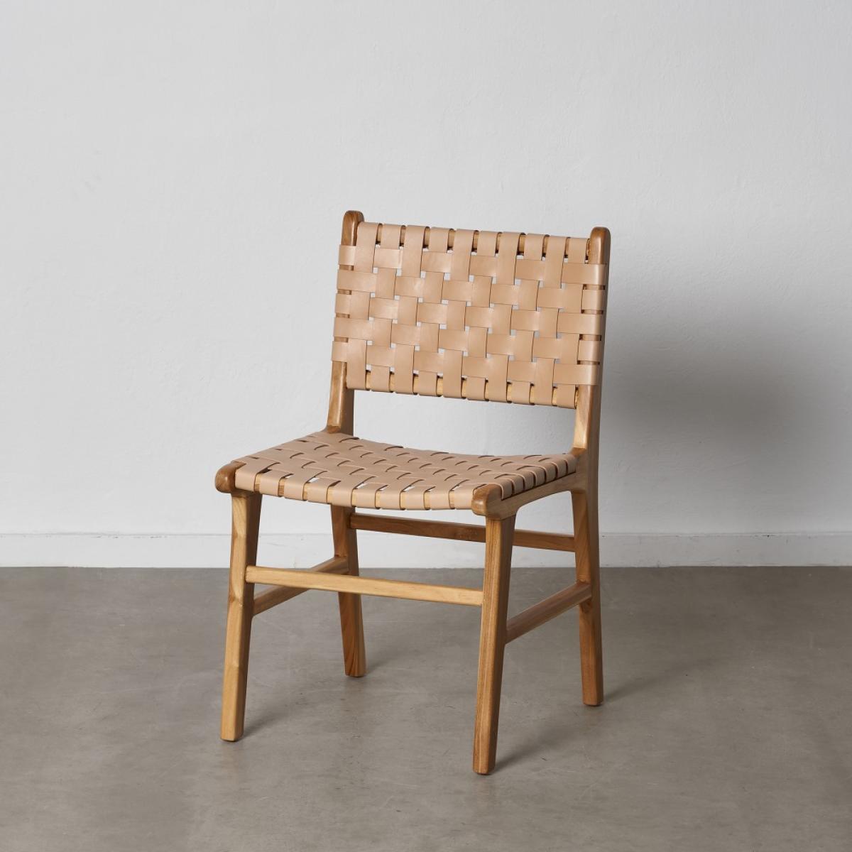 ASIENTOS - SILLAS 600386 - SILLA BEIGE MADERA TECA-PIEL 50 X 56 X 87 CM