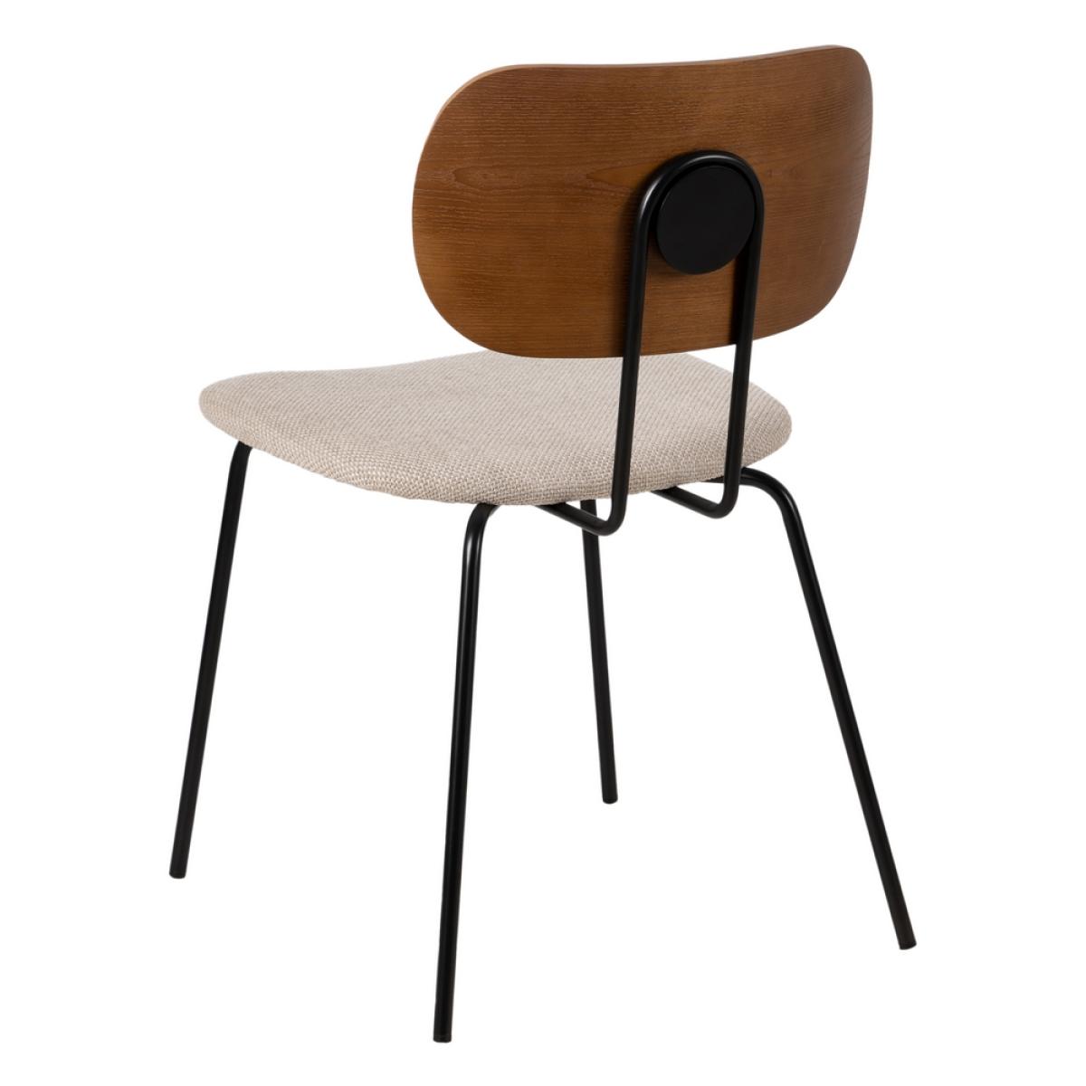 SILLA MARRÓN-CREMA TEJIDO-METAL SALÓN 48 X 55 X 82,50 CM Material: tejido (100% poliéster), metal, madera contrachapada. Altura asiento: 46cm. Profundidad asiento: 42cm. Ancho aisento: 48cm. Altura respaldo: 40cm. Cumple la normativa EN 16139:2013 No apilable.