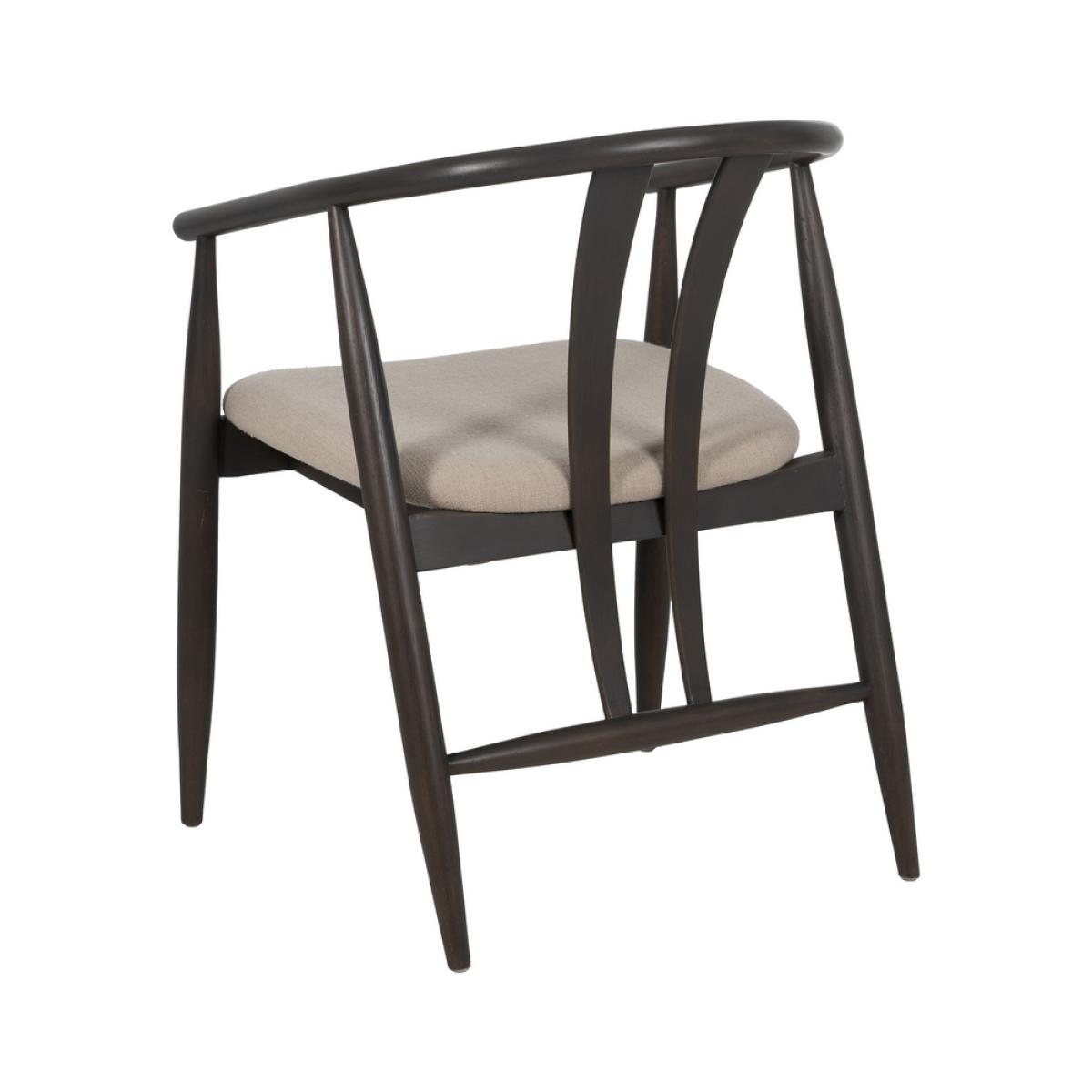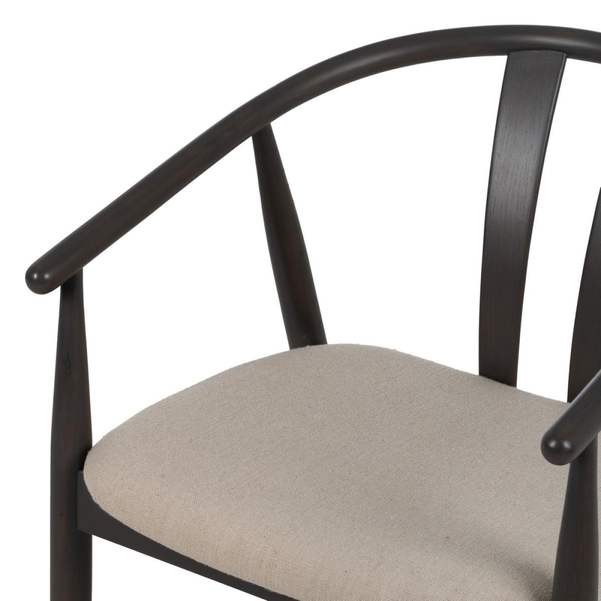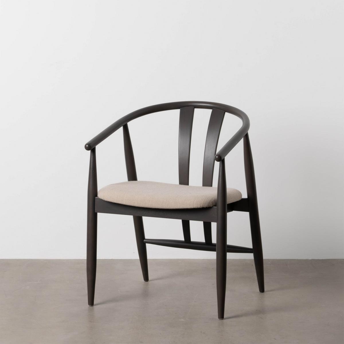 SILLA NEGRO TEJIDO-MADERA SALÓN 56,50 X 57 X 76 CM Estructura madera de roble. Altura del asiento:46cm. Altura de las patas:37cm Altura del respaldo:35cm. Distancia entre las patas:50cm Altura de los brazos desde el asiento:24,5cm. Composición cojines: Lino, acrílico, viscosa y poliéster. Densidad:30kg/m3 Relleno: Esponja. No apilable. No requiere montaje. Cumple con la normativa UNE-EN 12520:2015