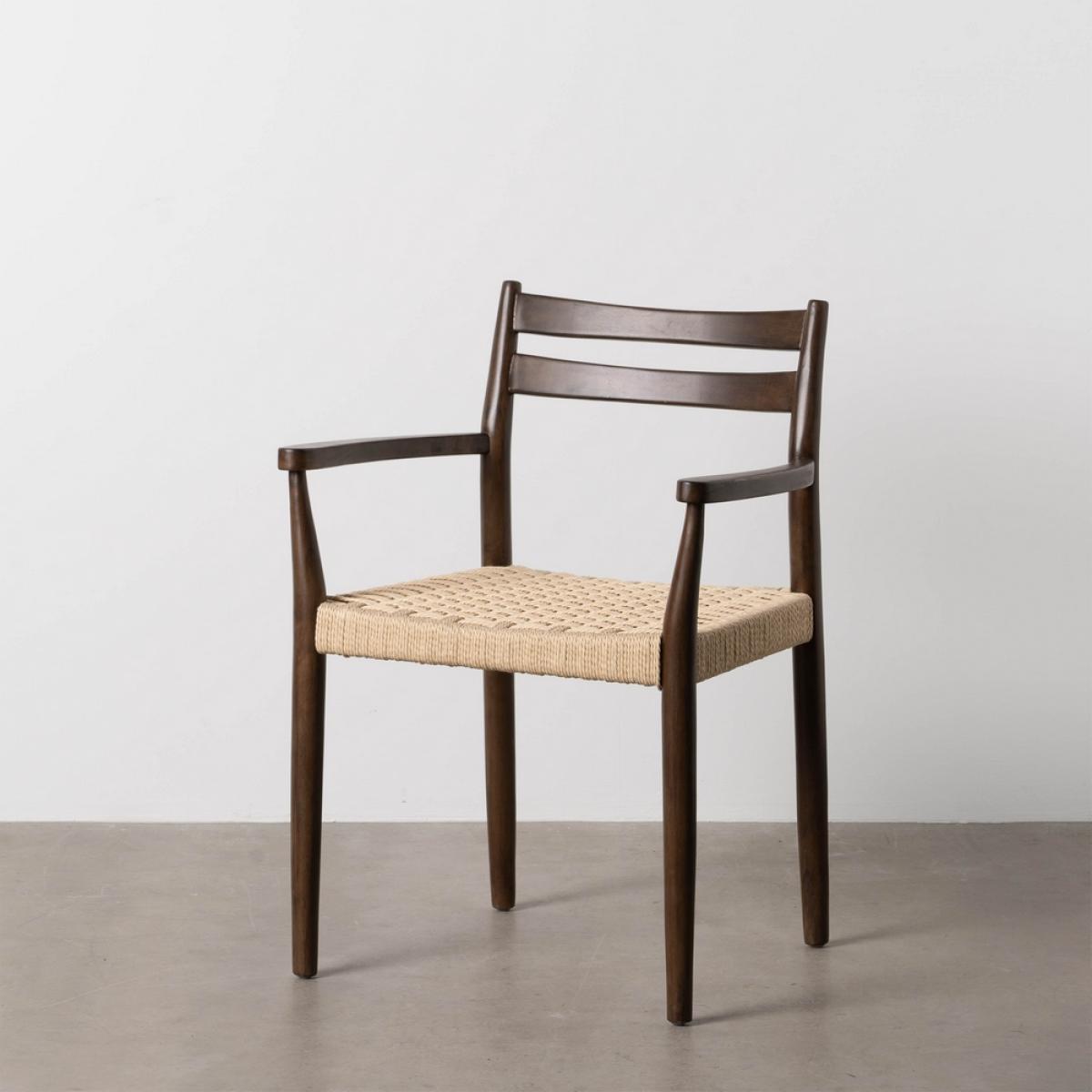 SILLA MARRÓN MADERA / FIBRA SALÓN 58 X 49 X 78,50 CM Estructura madera de caucho. Altura del asiento:45cm. Altura de las patas:40cm Altura del respaldo:34,5cm. Distancia entre las patas:47cm Altura de los brazos desde el asiento:18,5cm. Medidas del asiento:51x46,5x5cm No apilable. No requiere montaje. Cumple con la normativa UNE-EN 12520:2015